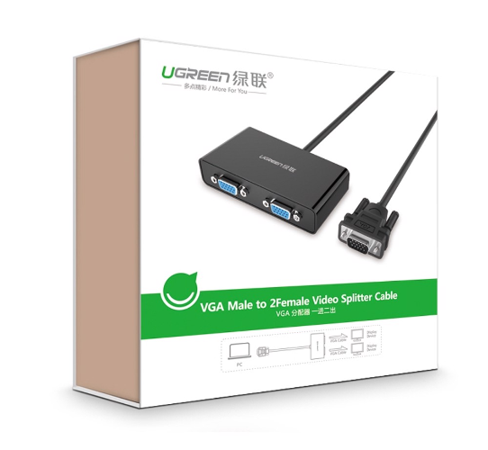 Mua tại TiktokBộ chia VGA 1 ra 2 Ugreen 20918 - Hàng chính hãng Bộ chia VGA 1 ra 2 cao cấp Ugreen 20918 hỗ trợ độ phân giải lên đến 1920×1440@60Hz với băng thông rộng tới 250Mhz. Được sản xuất bằng nguyên vật liệu bao gồm lõi cáp bằng đồng nguyên chất và các vi xử lý cao cấp mang đến khả năng chia tín hiệu vga ra 2 màn hình mà vẫn giữ nguyên chất lượng hình ảnh, là thiết bị hoàn hảo cho các nhu cầu giải trí, làm việc… Thông số kỹ thuật Ugreen 20918