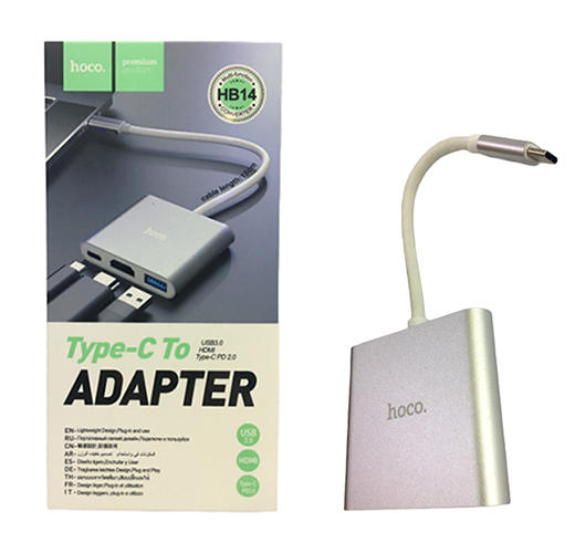 ✨BỘ CHUYỂN ĐỔI ĐẦU TYPE-C SANG 3 CỔNG( USB3.0+HDMI+PD) HOCO HB14 - DÀI 15CM - HÀNG CHÍNH HÃNG