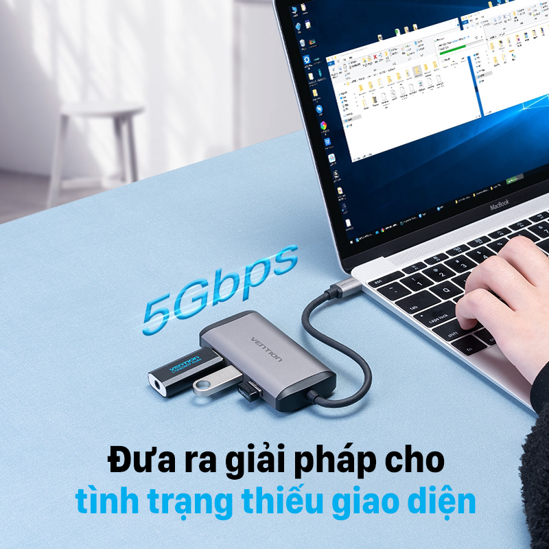 ✨Bộ chuyển đổi Type-C sang VGA + HDMI + 3 cổng USB 3.0 + Sạc Type-C PD 87W Vention TGSHB (6 in 1) - hàng chính hãng