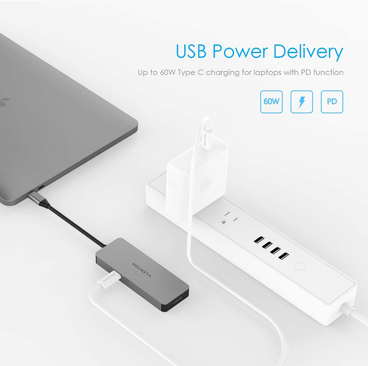 - Cổng sạc PD cung cấp công suất lên đến (60W) cho máy tính xách tay và thiết bị đính kèm có hỗ trợ USB Power Delivery Kích thước: 4.29 1.61 0.51 inches Trọng lượng: 115g Độ dài cáp: 15cm Kết cấu: hợp kim nhôm nguyên khối
