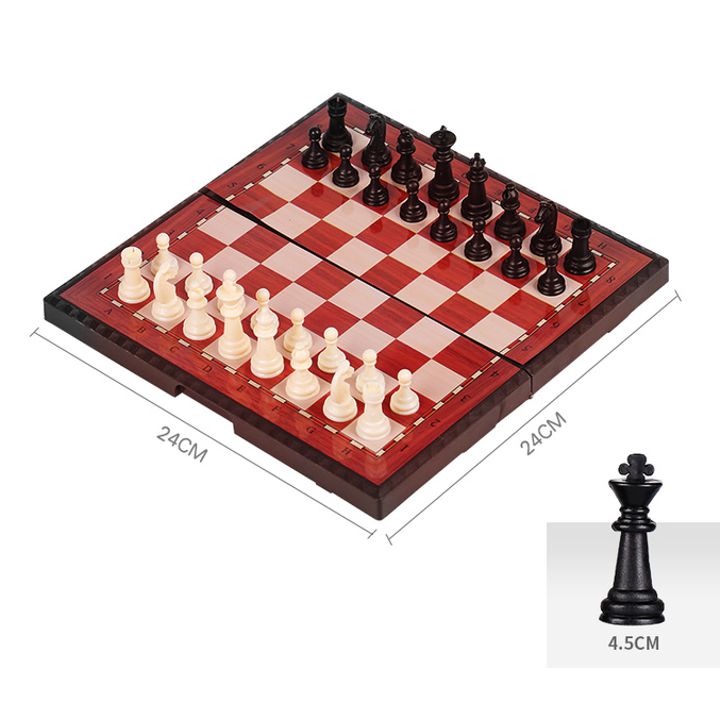 - Bàn cờ vua nam châm là trò chơi giải trí đơn giản nhưng vui nhộn và trí tuệ, phù hợp với mọi lứa tuổi. Bộ sản phẩm sẽ giúp bạn có thể giải trí với môn cờ thú vị này. Những quân cờ được cất bên trong bàn cờ khi gấp lại thành hộp, có khóa cài giúp bạn bảo quản tốt, tránh thất lạc. Với trò chơi vô cùng đơn giản nhưng cũng vô cùng hấp dẫn này bạn sẽ có những giây phút thoải mái. Trò chơi phù hợp với nhiều đối tượng và bạn có thể chơi trong bất cứ thời gian rãnh rỗi của mình. Sản phẩm là trò chơi giải trí đơn giản nhưng vui nhộn và trí tuệ, phù hợp với mọi lứa tuổi. Bàn cờ làm bằng nhựa cứng HIPS Mở ra làm bàn, đóng lại là hộp đựng Quân cờ có nam châm bàn từ tính giúp quân cờ không bị xê dịch Bề mặt màu được xử lý không bị bong tróc, phai mờ Kích thước : Bàn to :
