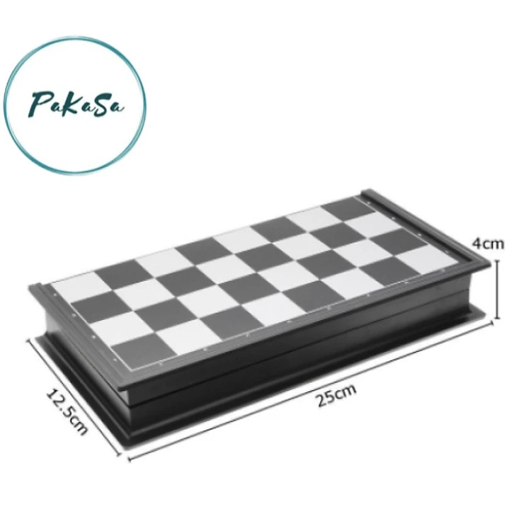 - Bàn cờ vua nam châm làm bằng nhựa cứng HIPS có kim loại và có thể gấp gọn, với khóa cài chắc chắn đảm bảo không làm rơi rớt các quân cờ bên trong.