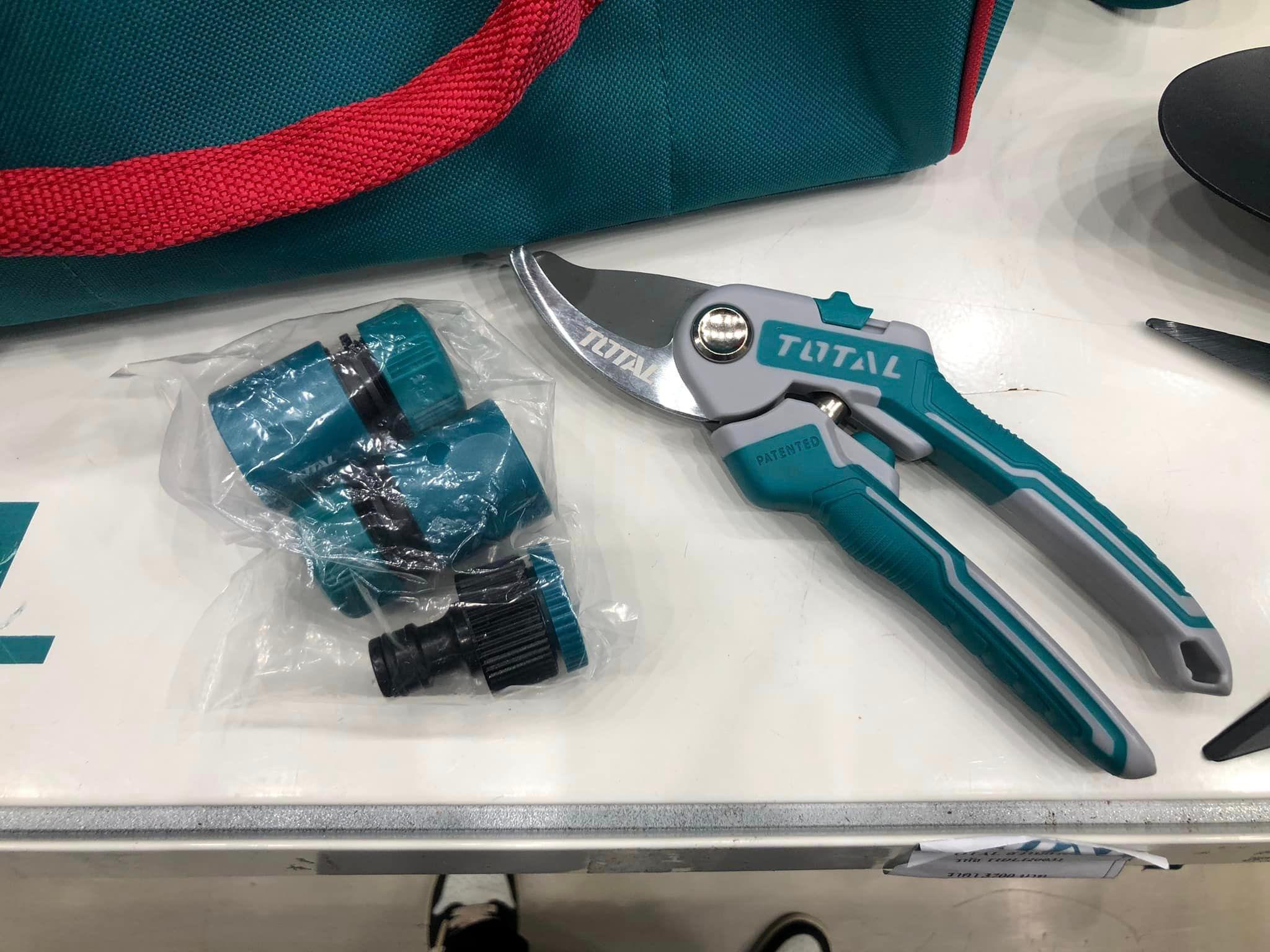 Thương hiệu đồ nghề và máy móc Total ngày càng khẳng định vị thế của mình trên thị trường, cạnh tranh thị phần với những nhãn hiệu có danh tiếng xưa giờ luôn. Total sẽ chứng minh hàng rẻ nhưng có chất lượng tốt là có thật! Total tools - Không cần bỏ số tiền lớn nhưng vẫn có cho mình những đồ nghề chất lượng. Từ những món đồ nghề đơn giản như búa, tuốc nơ vít, lục giác, cờ lê mỏ lết… được sử dụng nhiều trong gia đình cho đến những máy móc dùng điện và pin Lithium-Ion như máy khoan, máy đục bê tông, máy cưa lọng, máy cắt sắt, máy mài góc… công suất mạnh, hay được sử dụng trong nhiều ngàng công nghiệp nặng. Tất cả sản phẩm do Total sản xuất đếu khá là chất lượng và có mức giá rẻ, không như các ông lớn khác là Makita, Stanley… sản phẩm tuy tốt nhưng có giá thánh khá là đắt! Bạn thắc mắc vì sao mà công cụ - dụng cụ Total có giá rẻ ư?! Vì họ không tốn bất cứ tiền quảng cáo, quảng bá thương hiệu nào cả, từ đó mà giá thành sản phẩm rẻ! Thông số kĩ thuật -Mã sản phẩm: TOS23048 -Nhà sản xuất: Total -Bộ combo 7 công cụ làm vườn gồm: -1 Kéo cắt tỉa 220mm THT0601 -1 xẻng xúc đất làm vườn 340mm THFTT858 -1 Kéo cắt cỏ 340mm THTGS60340 -1 Bình phun 1.5L THSPP201502 -1 Vòi phun THZATN1101. 1 Bộ 3 khớp nối THWS030301 -1 Túi đựng công cụ 13 inch THT261325