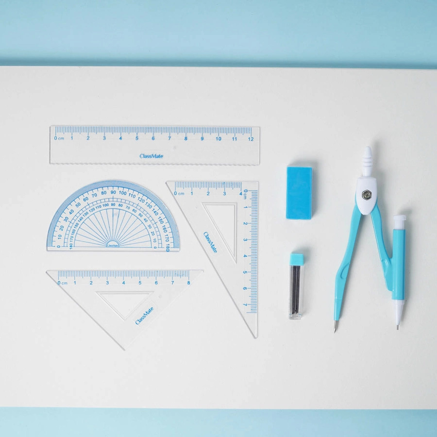 Bộ Compas 8 Món ClassMate CL-CM212 Sản phẩm an toàn tuyệt đối khi sử dụng. Bề mặt compa sử dụng sơn kim loại cao cấp, các chi tiết còn lại có thước thẳng, eke, đo