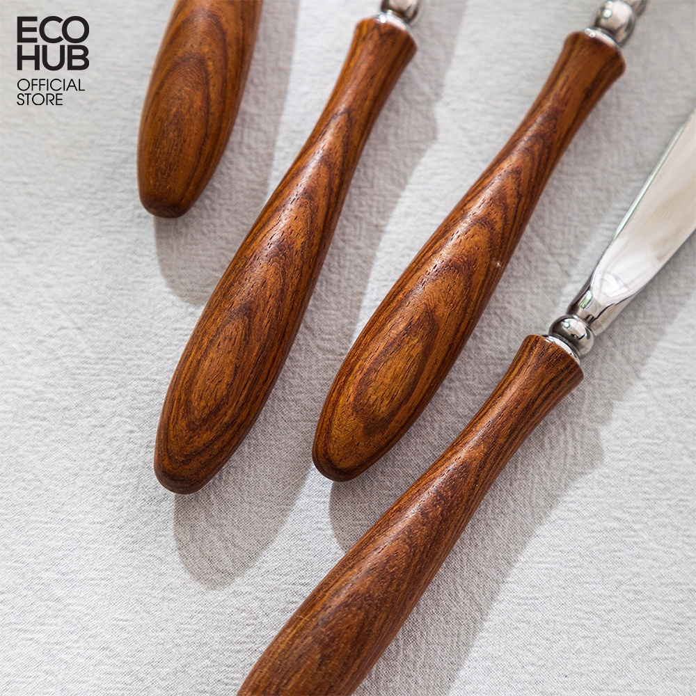 Bộ dao muỗng nĩa inox Cao Cấp, cán gỗ ECOHUB màu bạc sang trọng, Sử dụng cho nhà hàng cao cấp / cá nhân