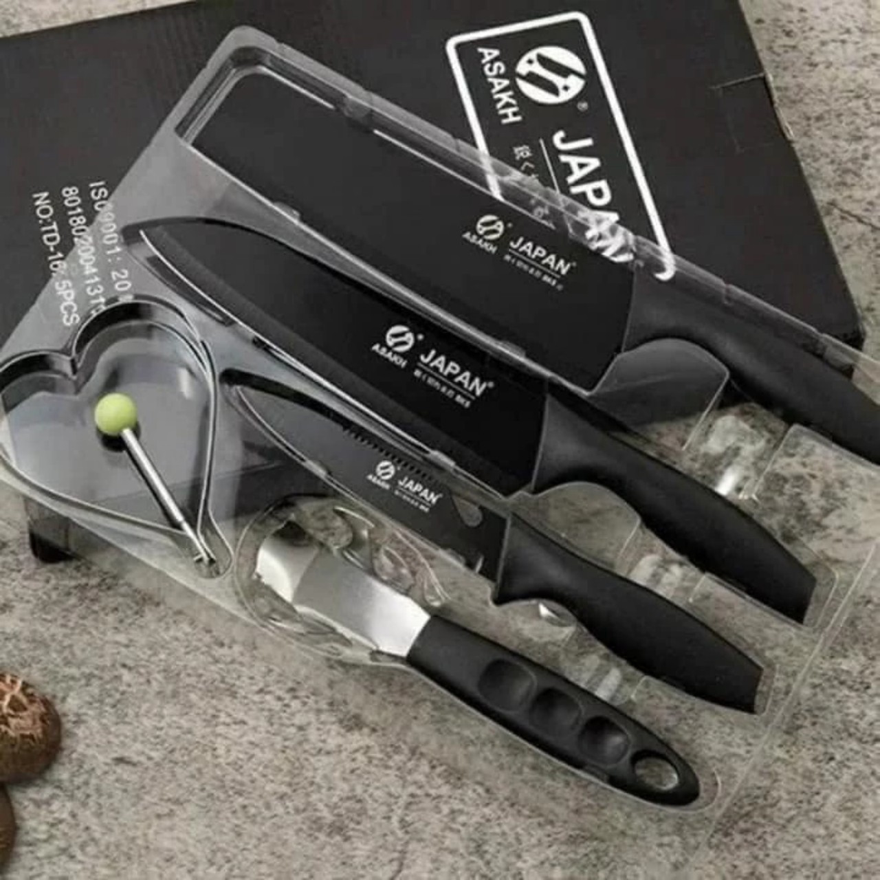 Model : ABSCR14-5 Loại sản phẩm : - Bộ dao 5 món Xuất xứ : Trung Quốc Chất liệu : thép không gỉ tiểu chuẩn (SCR14) Tính năng : - Bộ dao 5 món chế biến được nhiều