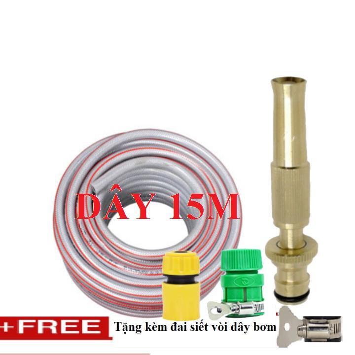 ✨ Bộ dây vòi xịt nước rửa xe, tưới cây . tăng áp 3 lần, loại 15m 206587 cút sập, + tặng đai