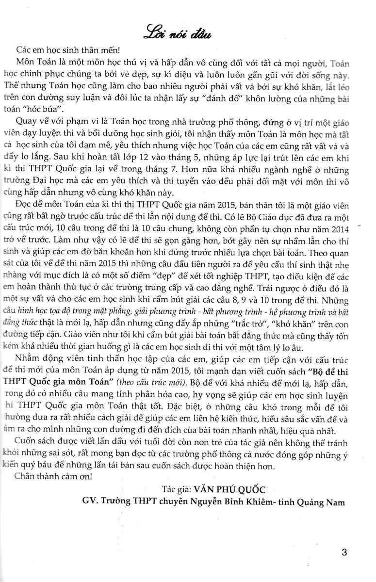 Đọc đề thi Đại học môn Toán khối A, A1 năm 2015, bản thân tôi là một giáo viên cũng rất bất ngờ trước cấu trúc đề thi lẫn nội dung đề thi. Có lẽ Bộ Giáo dục đã đưa ra một cấu trúc mới, 10 câu trong đề thi là 10 câu chung, không còn phần tự chọn. Làm như vậy có lẽ đề thi sẽ gọn gàng hơn, bớt gây nên sự nhầm lẫn cho thí sinh và giúp các em đỡ băn khoăn hơn khi đứng trước nhiều lựa chọn bài toán. Hơn nữa thật vất vả cho các em học sinh khi cầm bút giải các câu 7,8 và 9 trong đề thi. Những câu hình học tọa độ trong mặt phẳng, giải hệ phương trình và bất đẳng thức thật là mới lạ, hấp dẫn nhưng cũng đầy ắp những “trắc trở”, “khó khăn” trên con đường tiếp cận. Giáo viên như tôi khi cầm bút giải bài toán bất đẳng thức mà cũng thấy vất vả chồng chất huống gì là các em học sinh đi thi với một tâm lý lo âu.