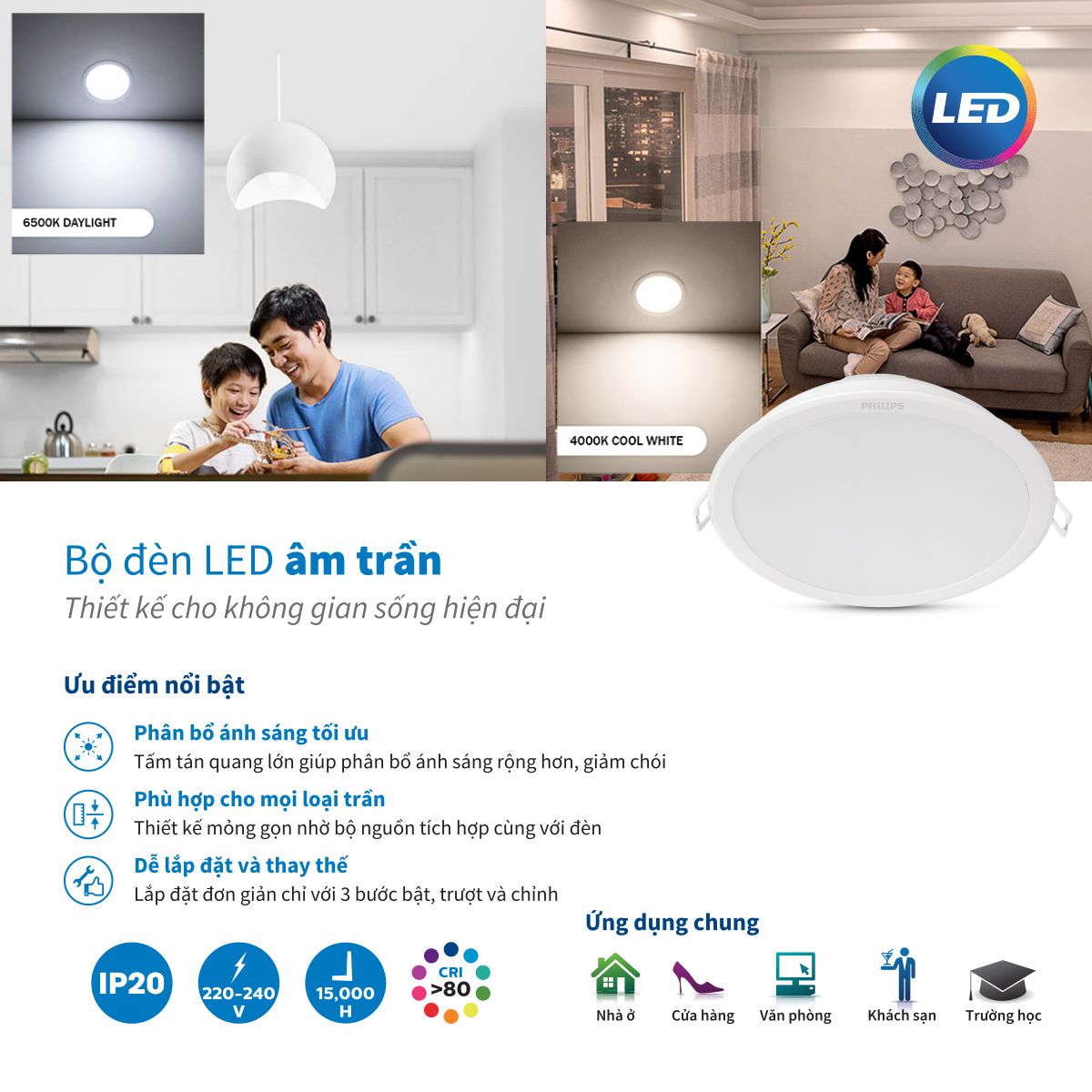 Bộ đèn LED Downlight âm trần PHILIPS Meson G3 dòng sản phẩm ưu việt trong phân khúc tầm trung, chất lượng ánh sáng tốt. Thiết kế hiện đại, lắp đặt dể dàng giúp cho không gian hoàn hảo.