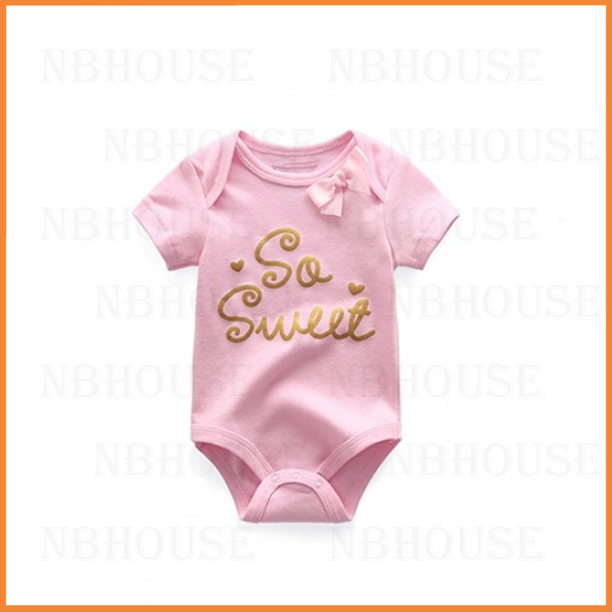 MÔ TẢ SẢN PHẨM : • Chất liệu vải cotton mềm mịn khả năng hút ẩm cao, thấm hút mồ hôi tốt. - Body sơ sinh với thiết kế tay ngắn liền quần giúp mẹ