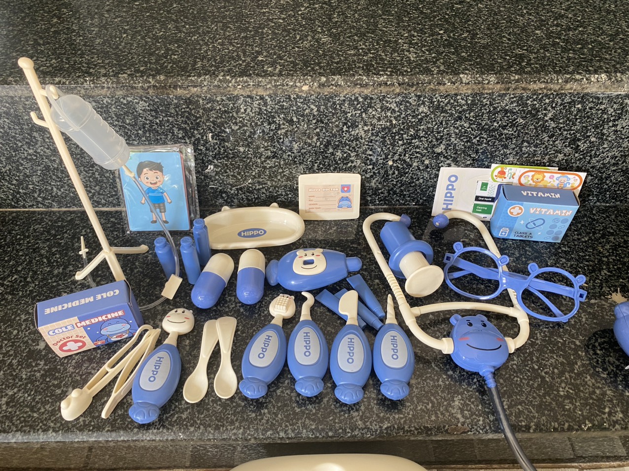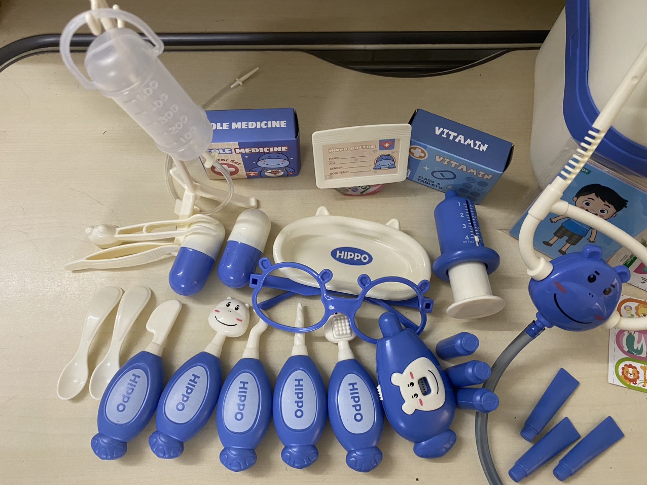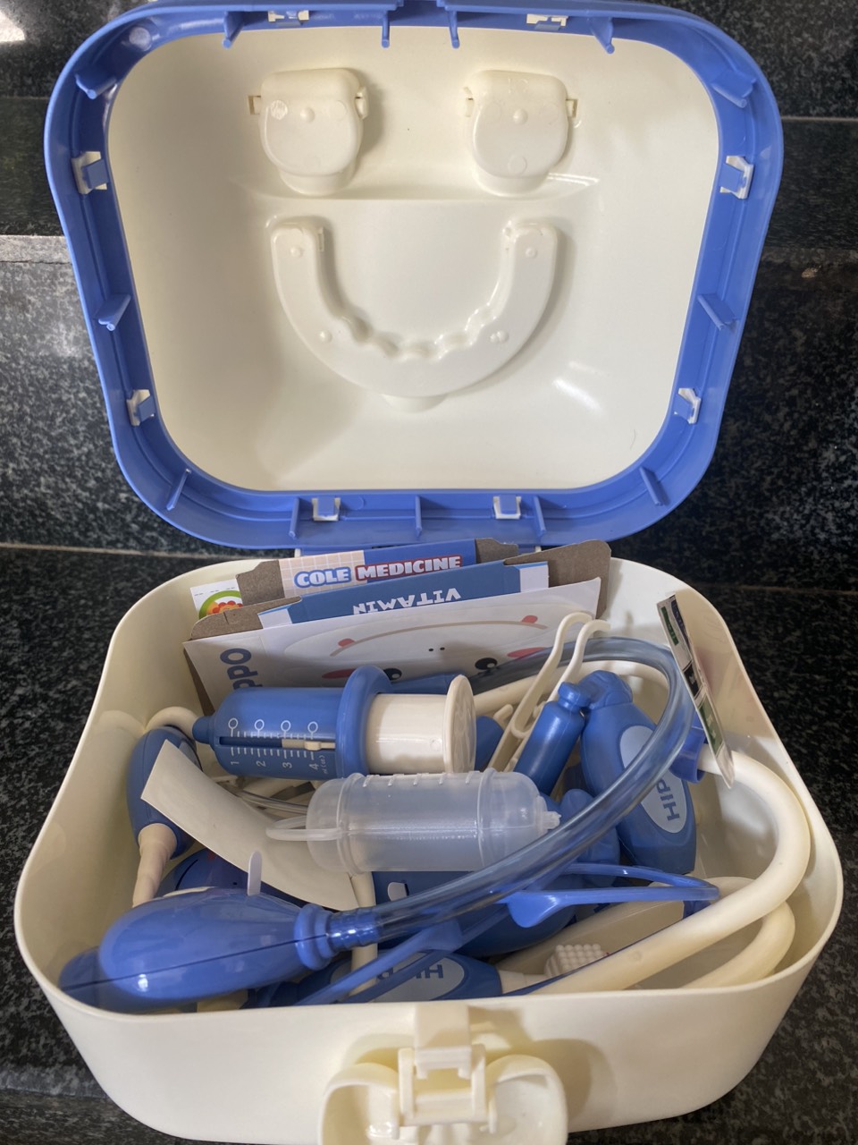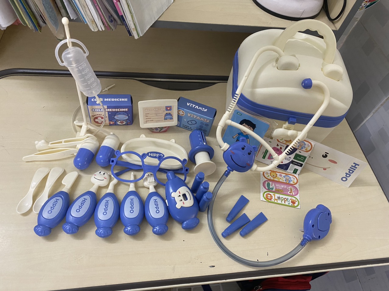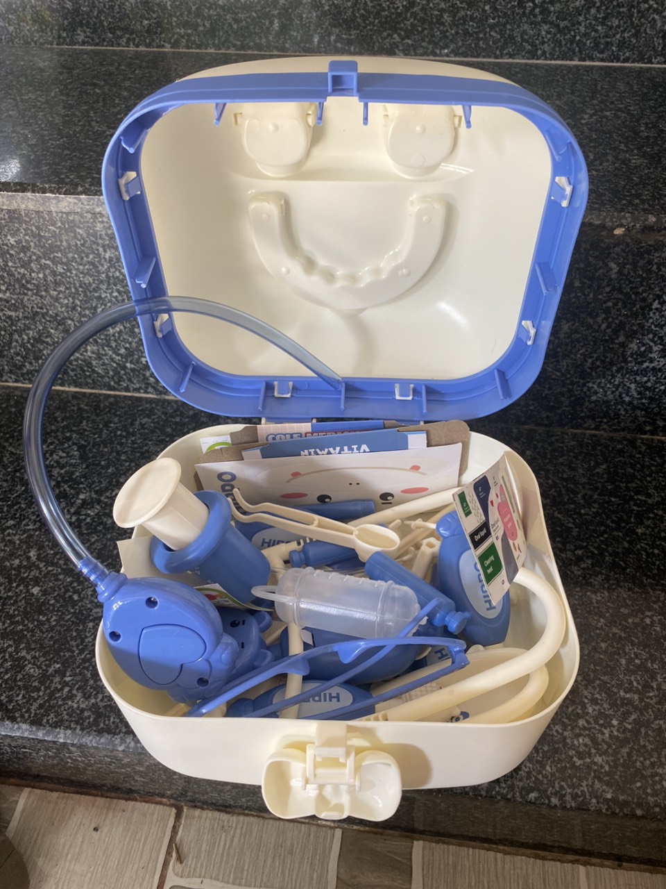Có thuốc, bàn chải, kem đánh răng và có rất nhiều thiết bị y thật để bé nhập vai làm bác sĩ.