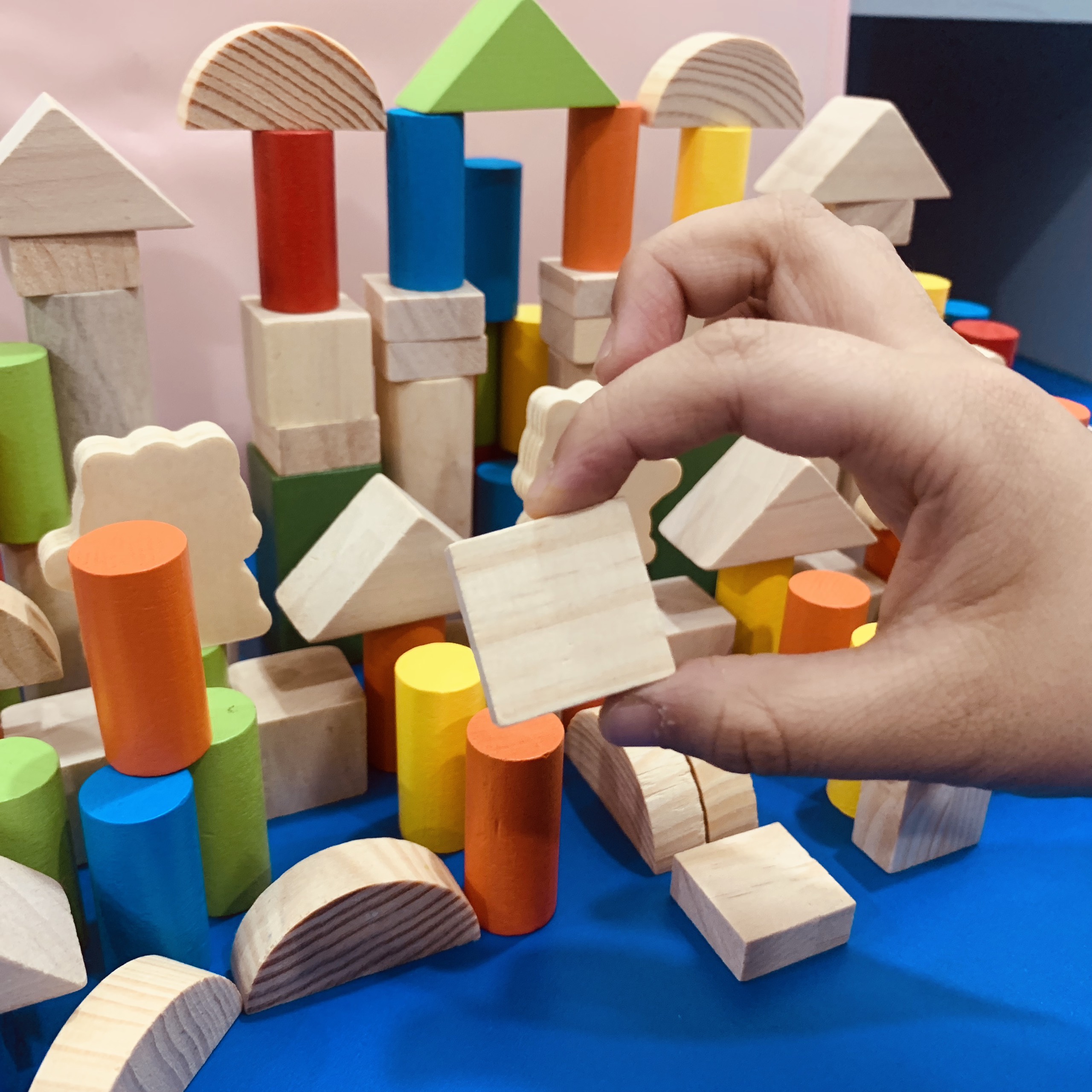 Kích thước sản phẩm: 100 chi tiết bằng gỗ với các hình khối đa dạng
