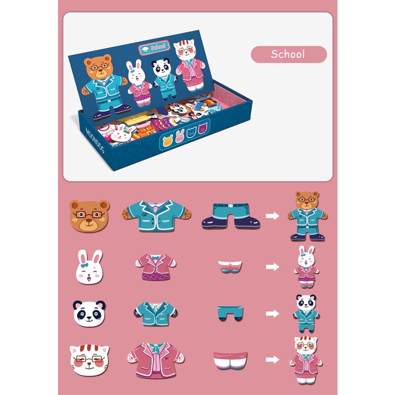 ✨Bộ Đồ Chơi Xếp Hình thay quần áo gia đình nhà Thỏ- Gấu- Động Vật- Chất liệu gỗ, có nam châm