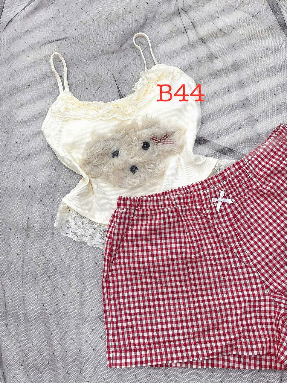 Thương hiệu: Sanny House Tên sản phẩm: Bộ đồ ngủ B44 Chất liệu: cotton thun lạnh cao cấp mềm mịn, co giãn, thấm hút tốt Kiểu dáng: gợi cảm, trẻ trung, hiện đại Màu: kem đỏ Size: dưới 60kg