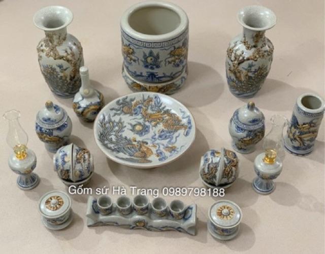Bộ Đồ Thờ Gốm Sứ Men Rạn Có Họa Tiết Đắp Nổi//Battrang.info/0987846706