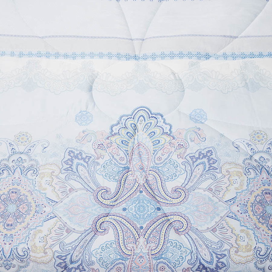 Bộ Drap & Chăn Chần Lụa Tencel Bee House F002 có màu xanh dương tươi mát gồm 5 món: 1 drap bọc 1.6 x 2 m/ 1.8 x 2m, 2 vỏ gối nằm 50 x 70 cm, 1 vỏ gối ôm 35 x 100 cm và 1 chăn chần 2 x 2.2 m. Bộ sản phẩm được thiết kế đồng bộ theo cùng một phong cách, góp phần tô điểm cho không gian sống thêm trang nhã, ấn tượng.