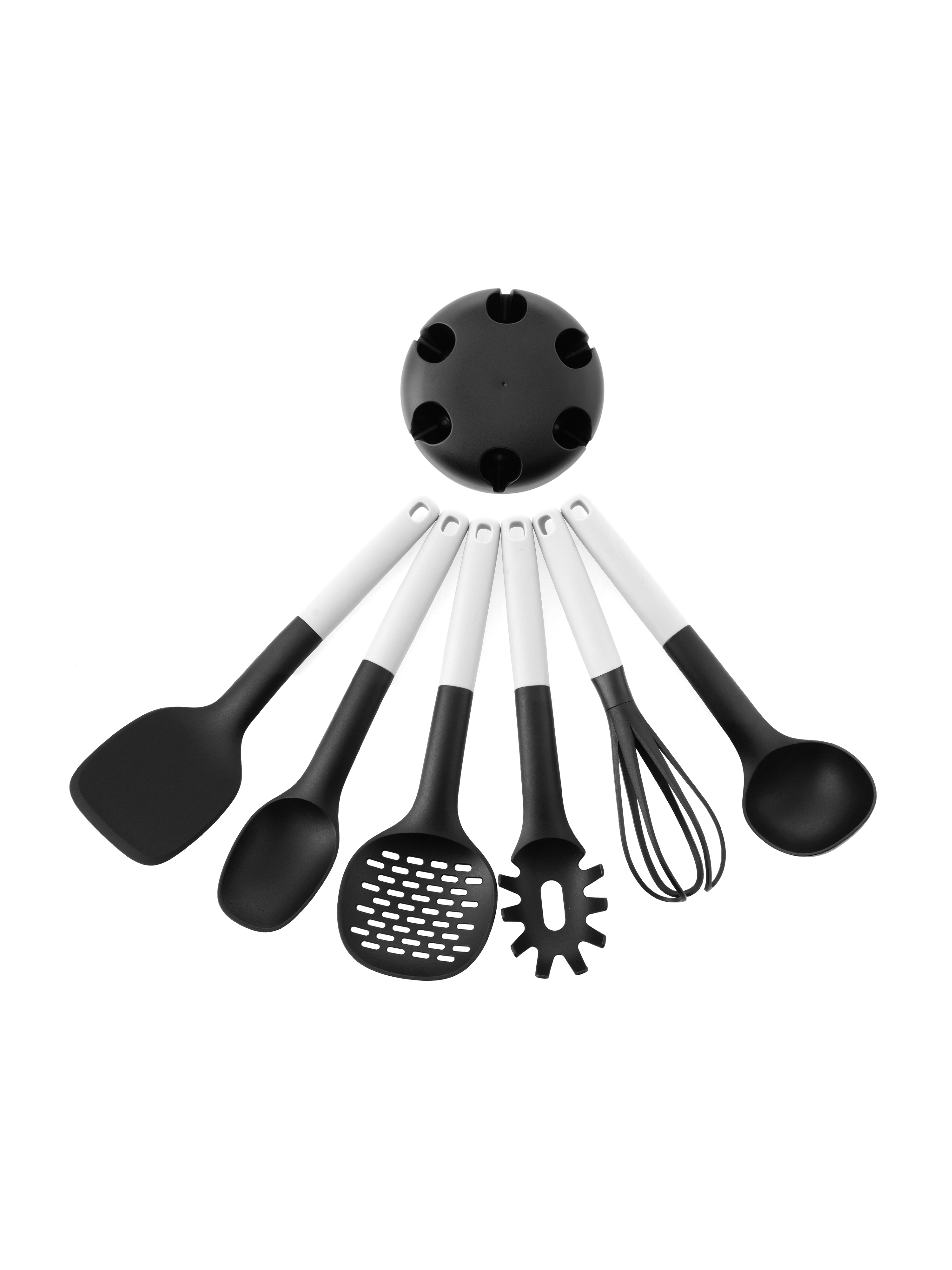Bộ dụng cụ nhà bếp INOCHI Chất liệu: Nhựa PA cao cấp an toàn cho sức khỏe Kích thước: 145x145x394mm Đặc tính sản phẩm: - Bộ dụng cụ không làm trầy xước lớp chống dính