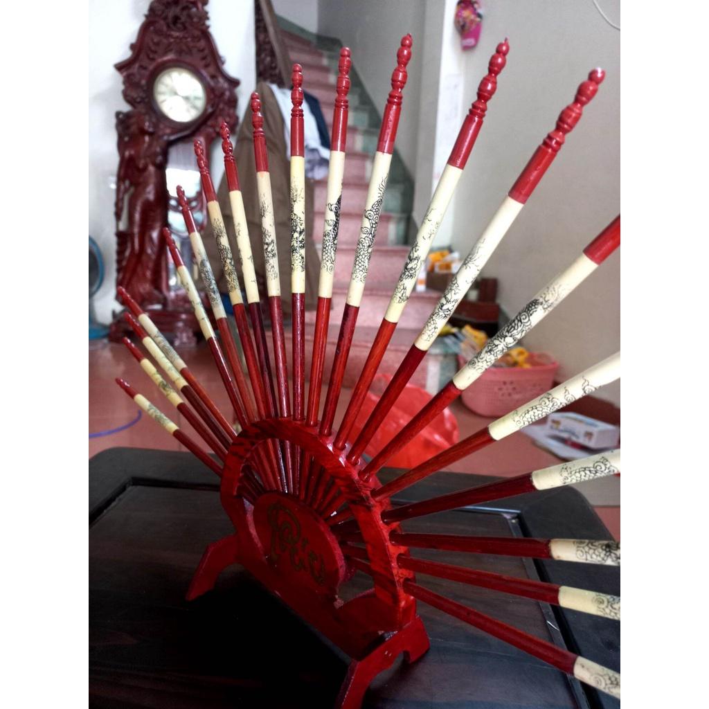 _ Bộ đũa thờ kệ và đũa 10 đôi được làm bằng chất liệu gỗ hương tự nhiên 100% ,Ở giữa thân đũa được nối đoạn sương trắng ,kết hợp với khắc rồng cuốn