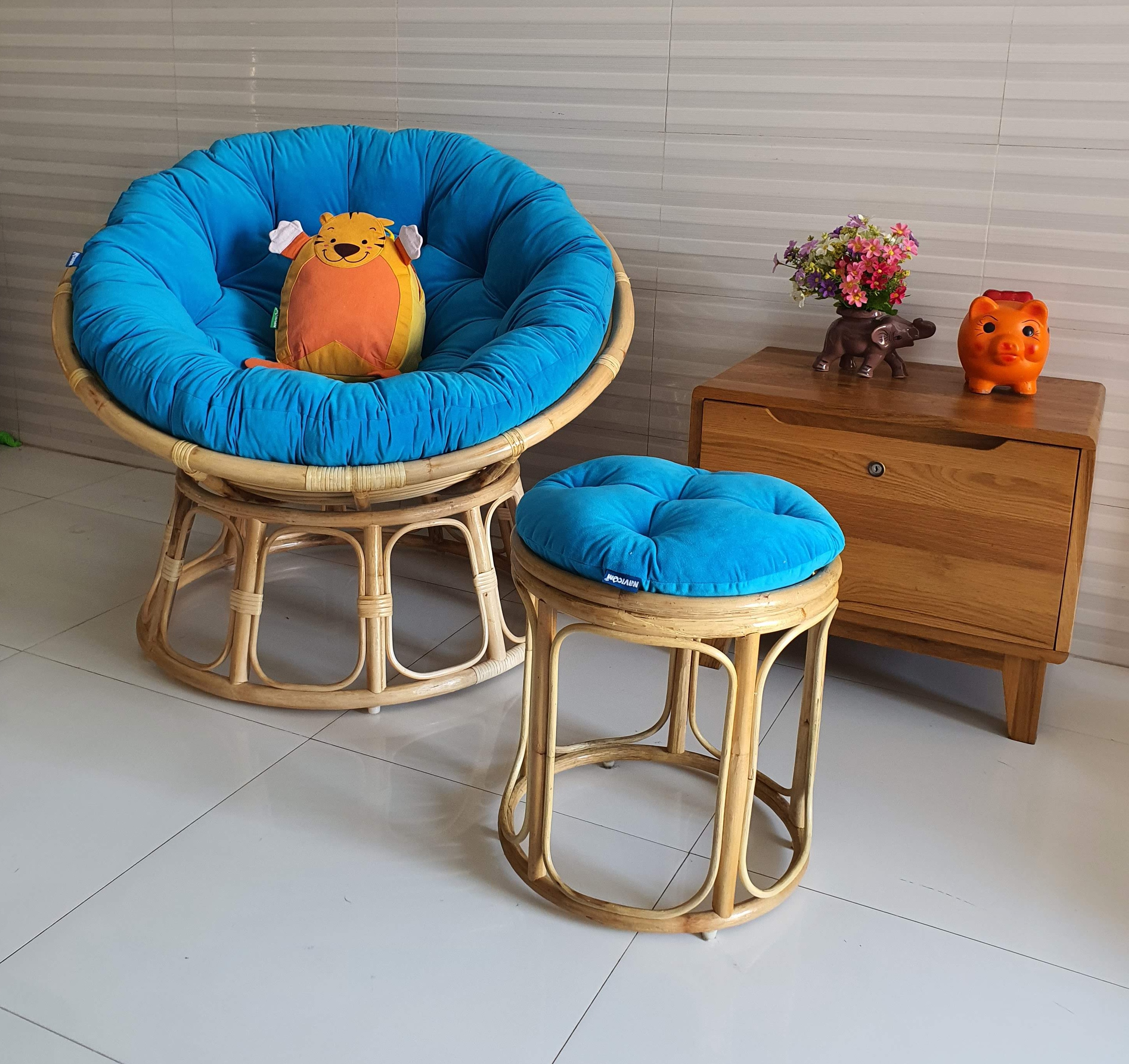 ✨Bộ ghế thư giãn papasan + đôn nhỏ ( vải nhung cao cấp xanh biển)