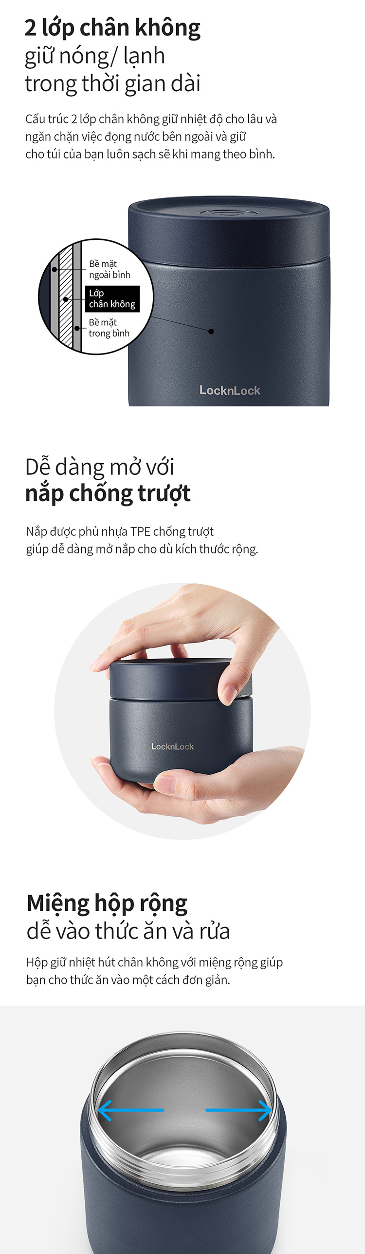Hộp giữ nhiệt hút chân không với miệng rộng giúp cho thức ăn vào một cách đơn giản.