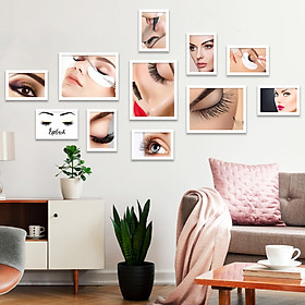 ✨Bộ Khung Ảnh Treo Tường Trang Trí Tiệm Nối Mi, Hình Ảnh Nối Mi Đẹp Hiện Đại Chất Lượng Cao Tặng Kèm bộ ảnh như hình mẫu, đinh treo tranh và sơ đồ treo PGC262