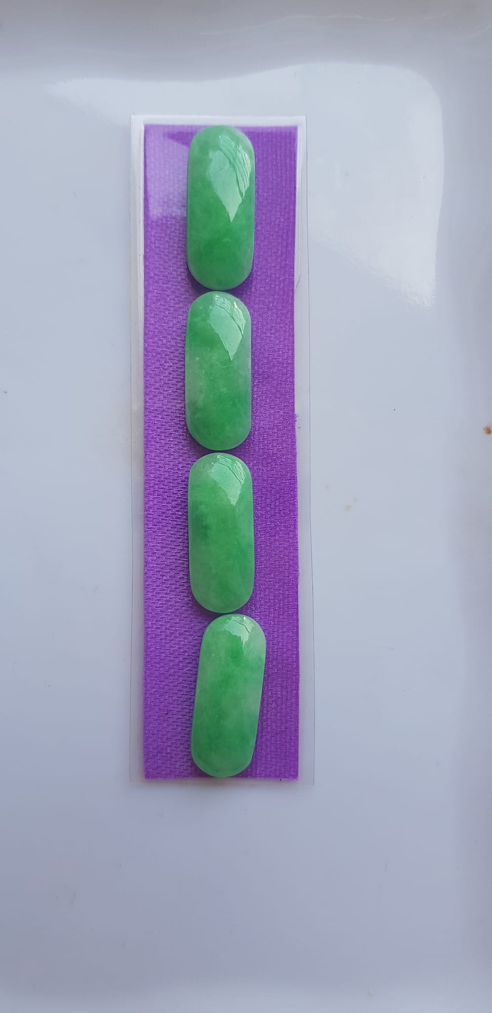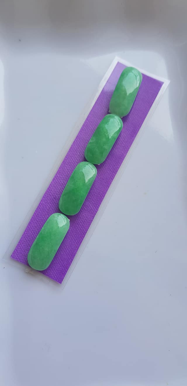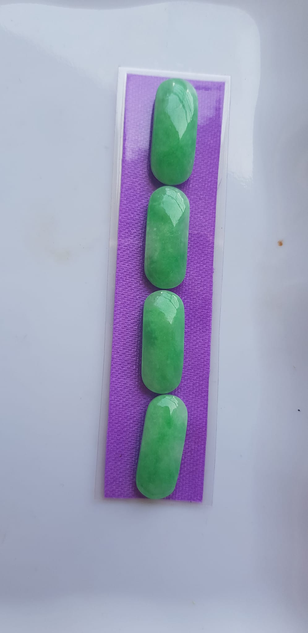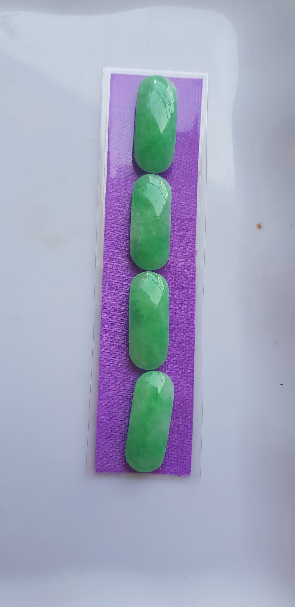Bộ Lắc Tay Yên Ngựa Mới 4 viên Cẩm Thạch Tự Nhiên Xanh Tươi đều bóng đẹp Size Dài 20mm N9mm cao 3mm