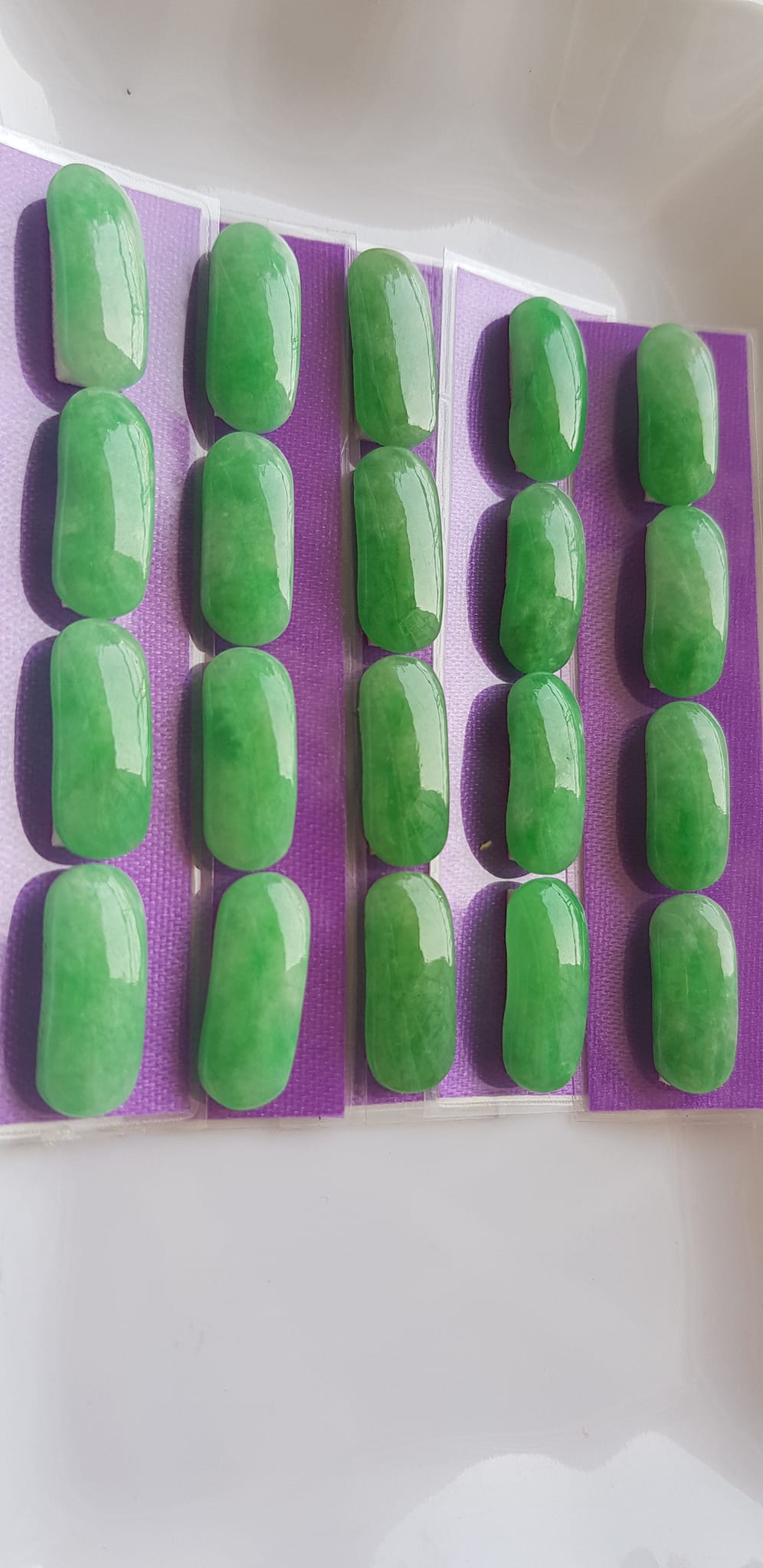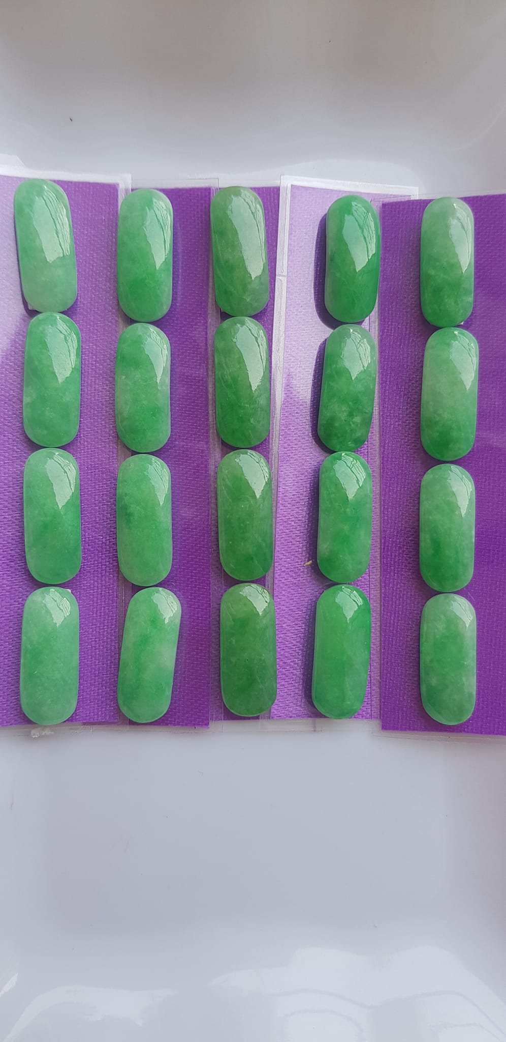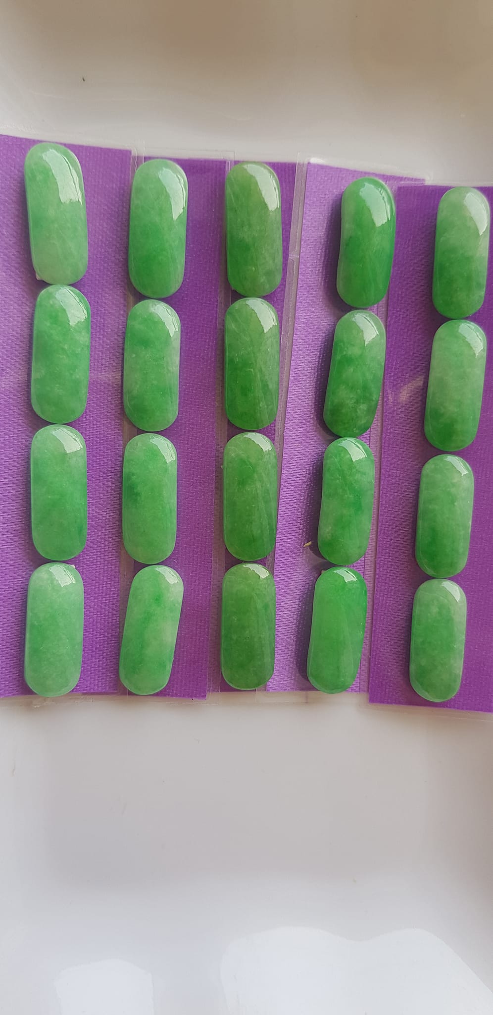 Bộ Lắc Tay Yên Ngựa Mới 4 viên Cẩm Thạch Tự Nhiên Xanh Tươi đều bóng đẹp Size Dài 20mm N9mm cao 3mm