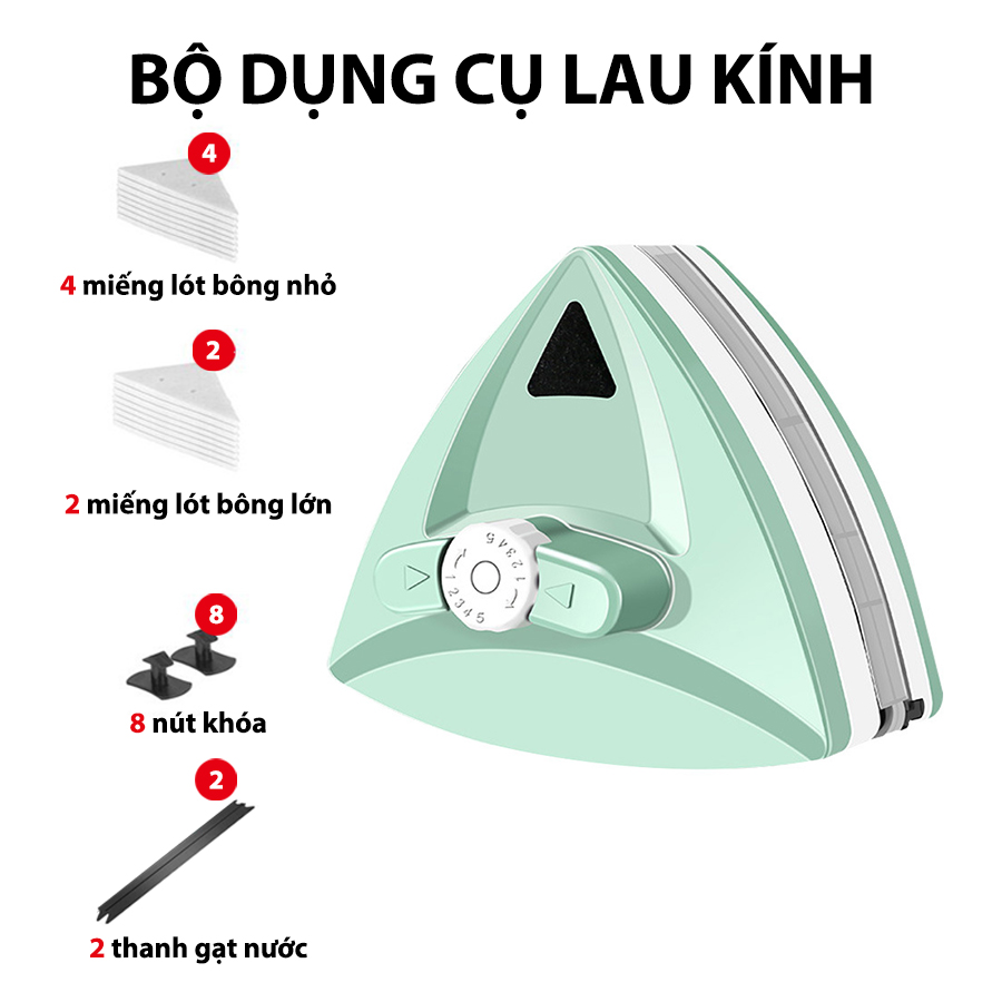 NÚT ĐIỀU CHỈNH LỰC TỪ TÍNH: Điều chỉnh 5 cấp độ linh hoạt theo độ dày của mặt kính. Tăng khả năng làm sạch.