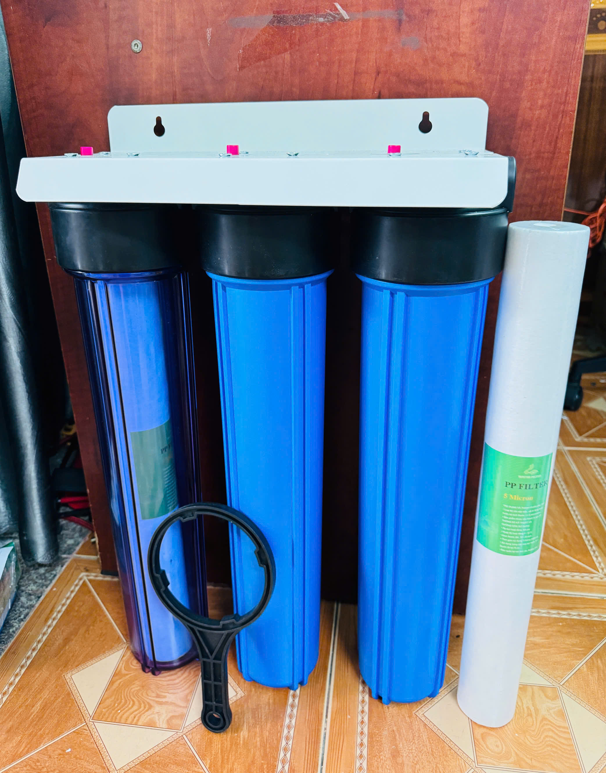 Hướng dẫn gắn lọc thô sinh hoạt 3 cấp loại 20 inch cho gia đình | Xử lý nước vàng sinh hoạt gia đình