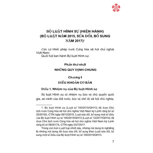 Số: 01/VBHN-VPQH Hà Nội, ngày 10 tháng 07 năm 2017 Cuốn 1: Bộ luật Hình sự năm 2015 sửa đổi, bổ sung 2017 (NXB Công an nhân dân) Tác giả: Nhiều tác giả NXB lao