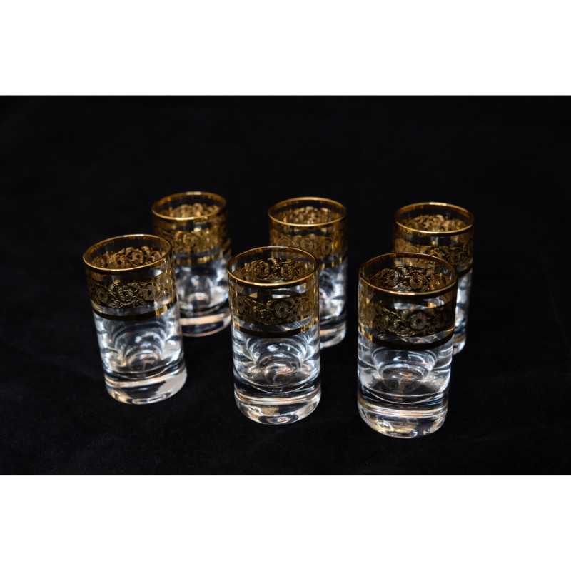 Bộ 6 ly rượu mạnh 050 ml mài nho viền vàng 24k Tiệp khắc !