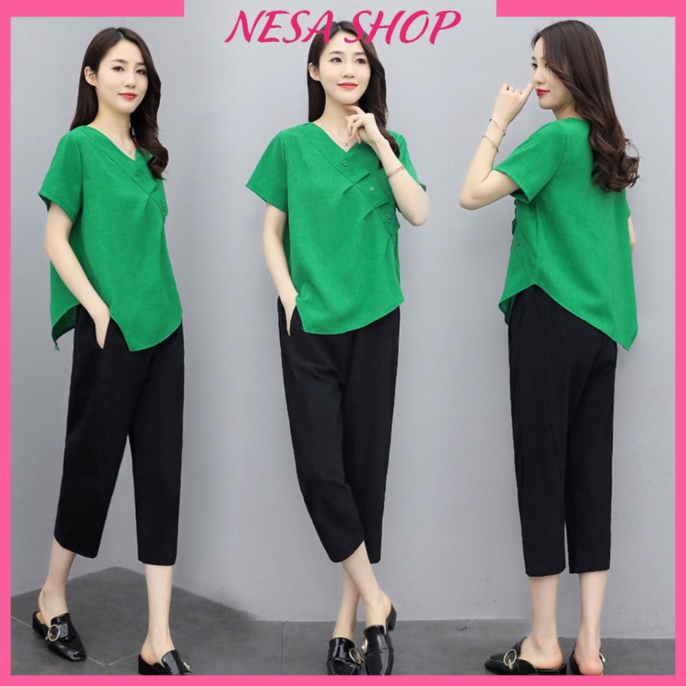 Bộ mặc nhà nữ, chất liệu Đũi mát mẻ, thấm hút mồ hôi, đồ bộ mặc nhà, đồ bộ trung niên nữ.