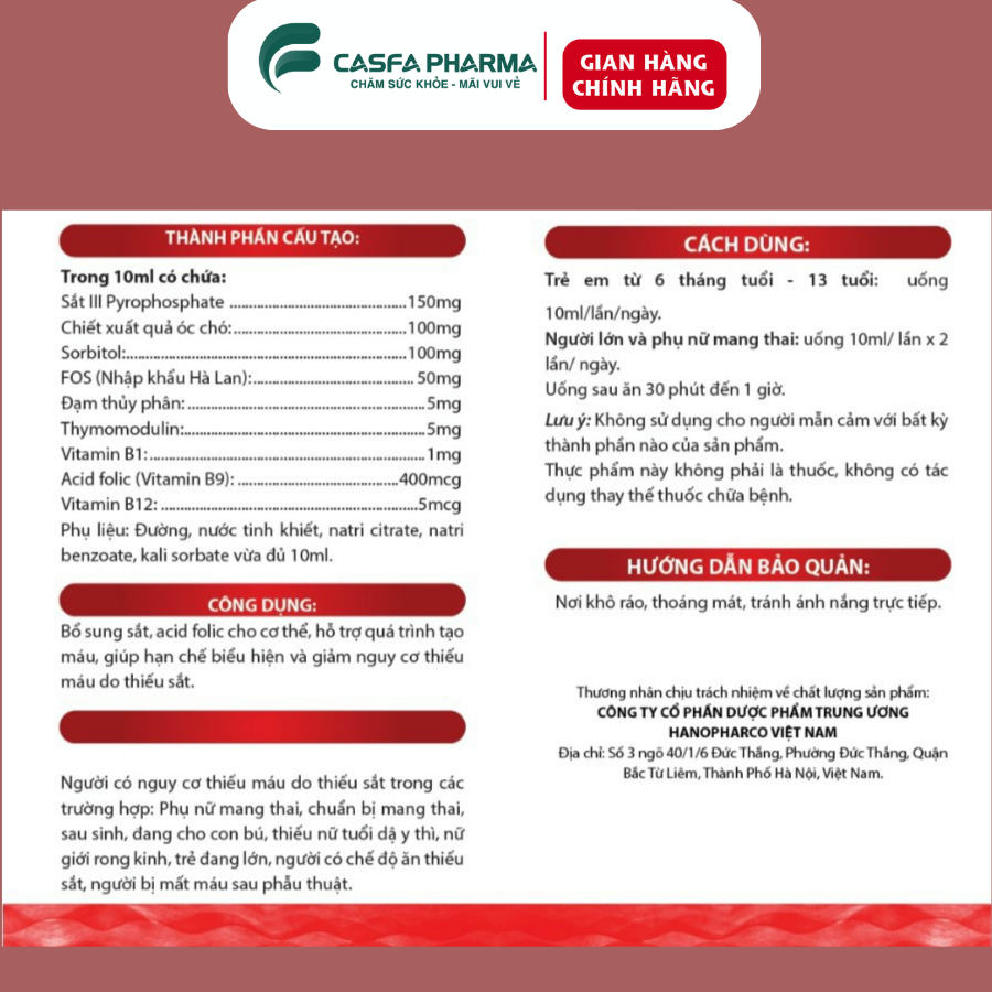✨Bổ máu HEMATOL Hanopharco, sắt, axit folic cho bà bầu, người thiếu sắt, hộp 20 gói x 10ml