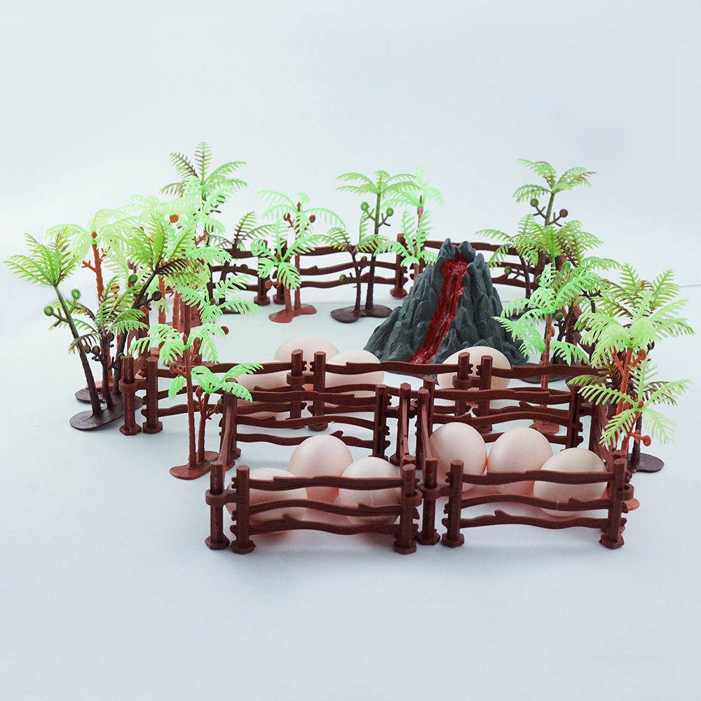 ✨Bộ Mô Hình Sưu Tập Đồ Chơi Nhựa 46 Chi Tiết Cây Cối Lá Xanh Thanh Hàng Rào Trứng Khủng Long Núi Lửa
