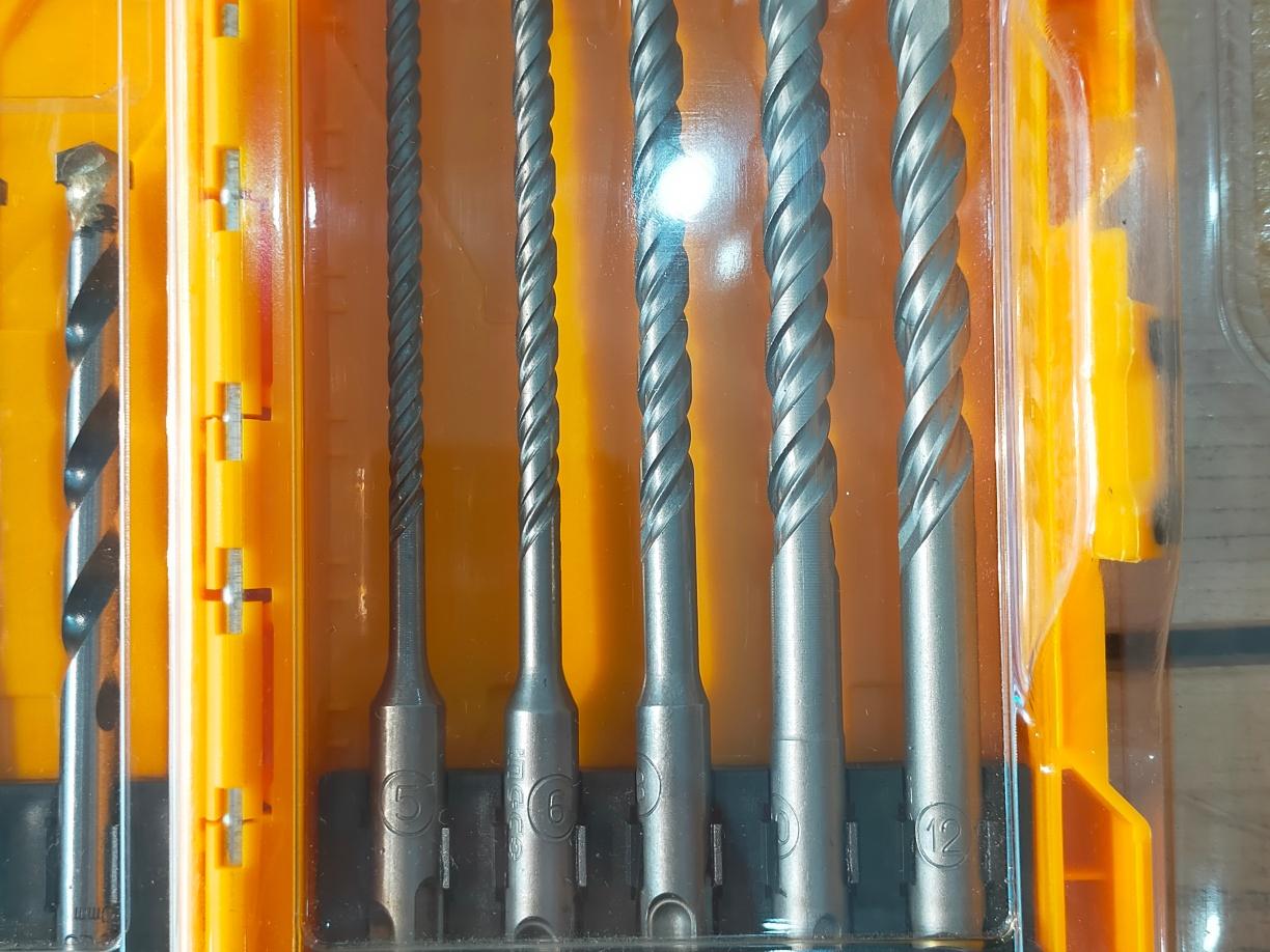 - 5 mũi khoan bê tông đuôi gài SDS plus kích thước: 5X160mm, 6X160mm, 8X160mm, 10X160mm, 12X160mm