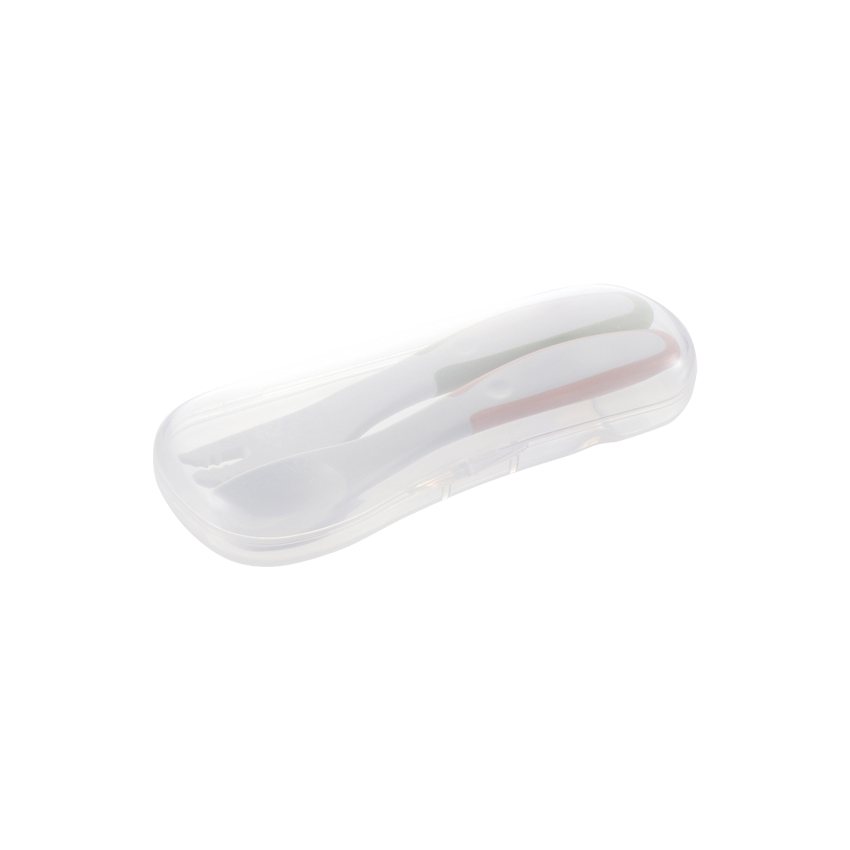 Bộ muỗng mềm và muỗng nhựa ăn dặm TLI Richell Nhật Bản - bước 1 có hộp đựng cho bé ăn tập ăn thô | Baby - Dùng cho bé bắt đầu ăn dặm từ