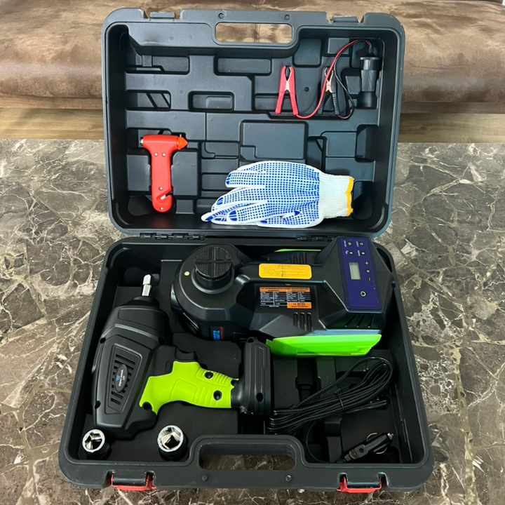Bộ nâng kích gầm điện, kiêm máy bơm lốp và máy siết ốc ô tô đa năng 3 trong 1
