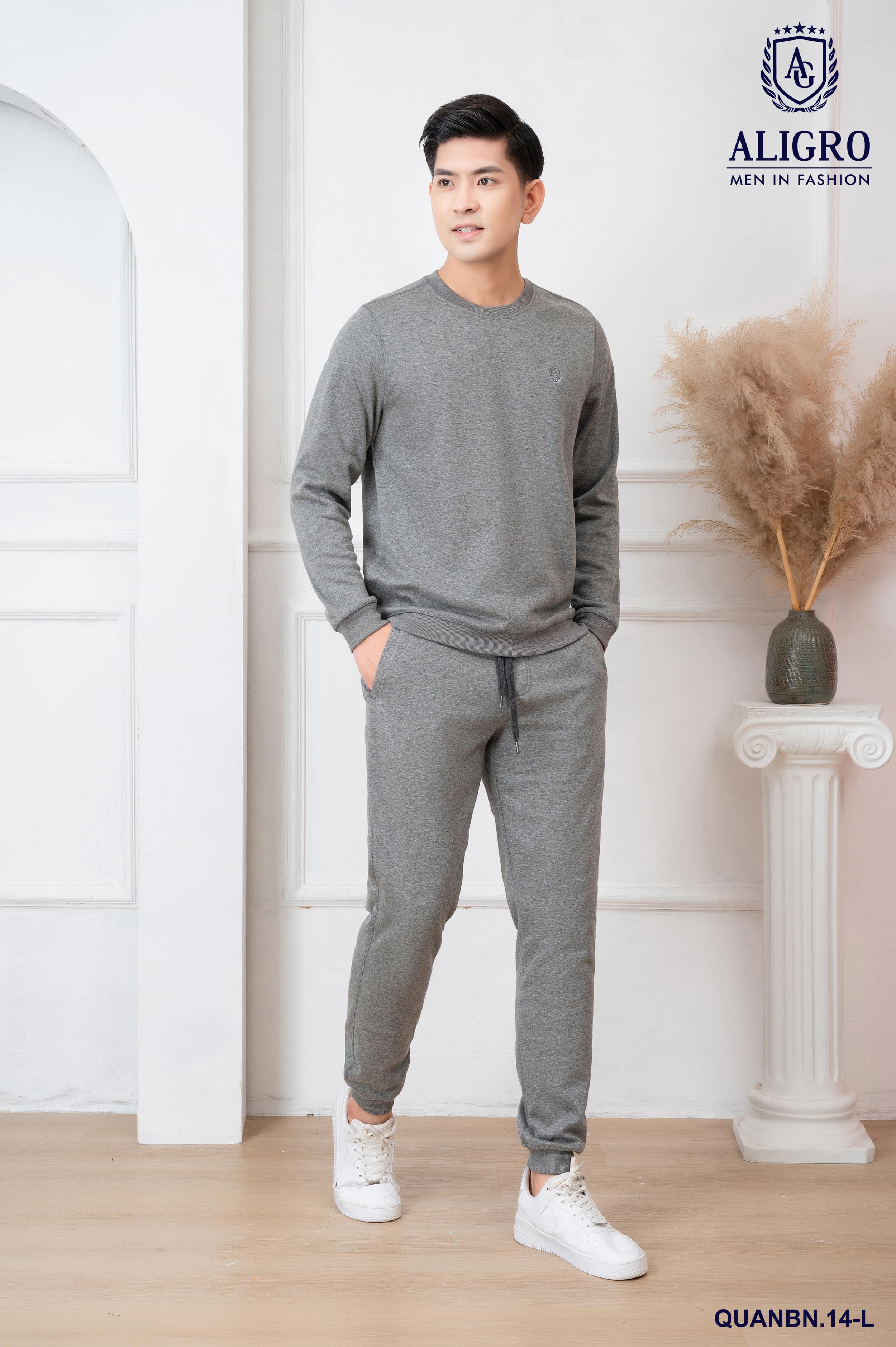 ✨Bộ nỉ cổ tròn màu ghi nhạt ALIGRO BN.14