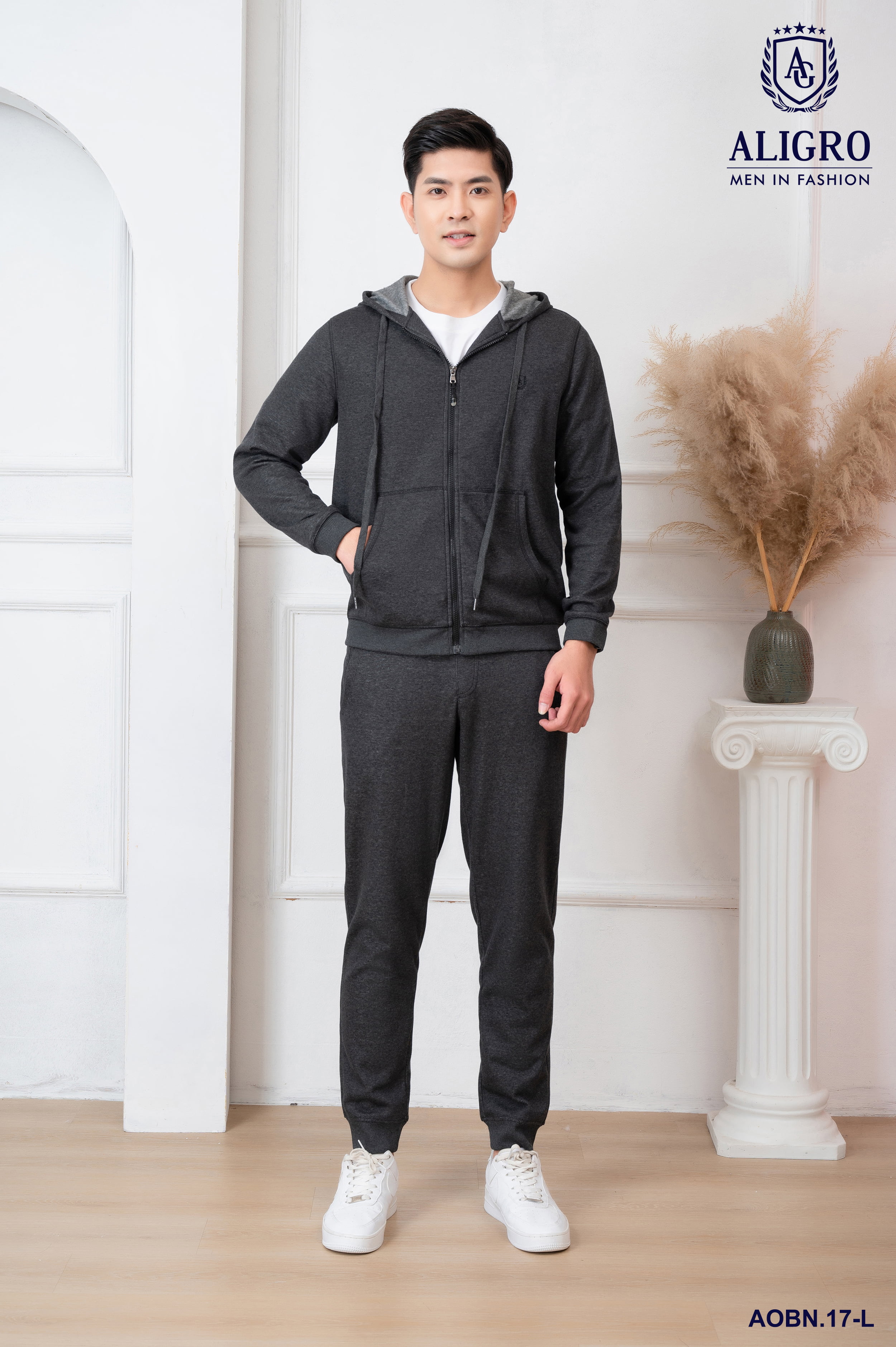 ✨Bộ nỉ hoddie nam ALIGRO kéo khóa có mũ màu ghi đậm BN.17