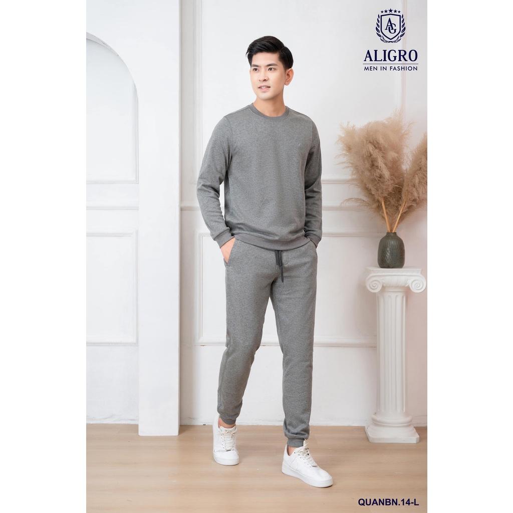 ✨Bộ nỉ nam dài tay ALIGRO cổ tròn chất liệu nỉ 100% cotton màu ghi nhạt ALGBN.14