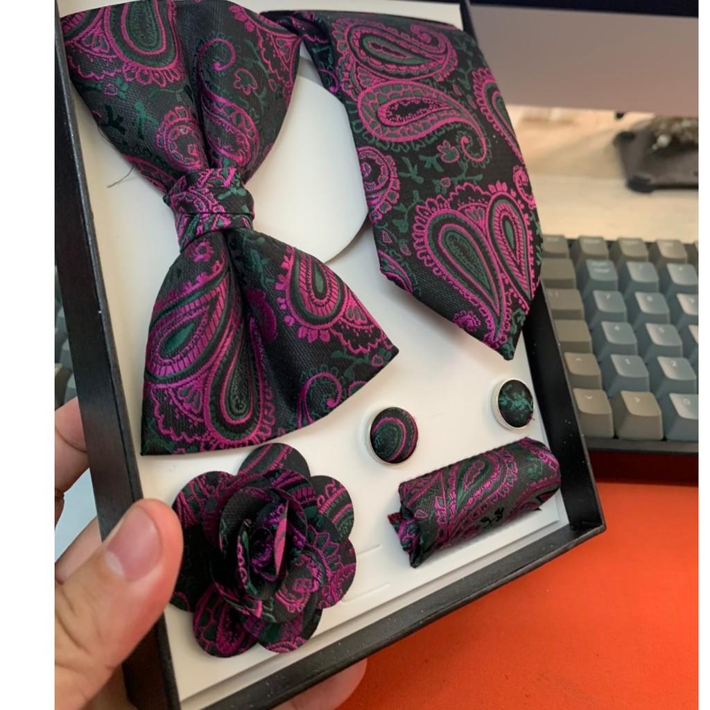 Cà vạt nơ chú rể 2020 GIANGPKC Cavat chú rể 6cm kèm nơ Bộ cavat nơ chú rể - hoa cài véc - khăn cài véc - nút măng sét Chất liệu vải gấm hình cao cấp - trọng bộ trong hộp sang trọng Làm quà cưới - quà thăng chức - quà tặng bạn trai là quá tuyệt Nơ 5x10 cm caf vạt 6x150cm khăn 20x20 cm