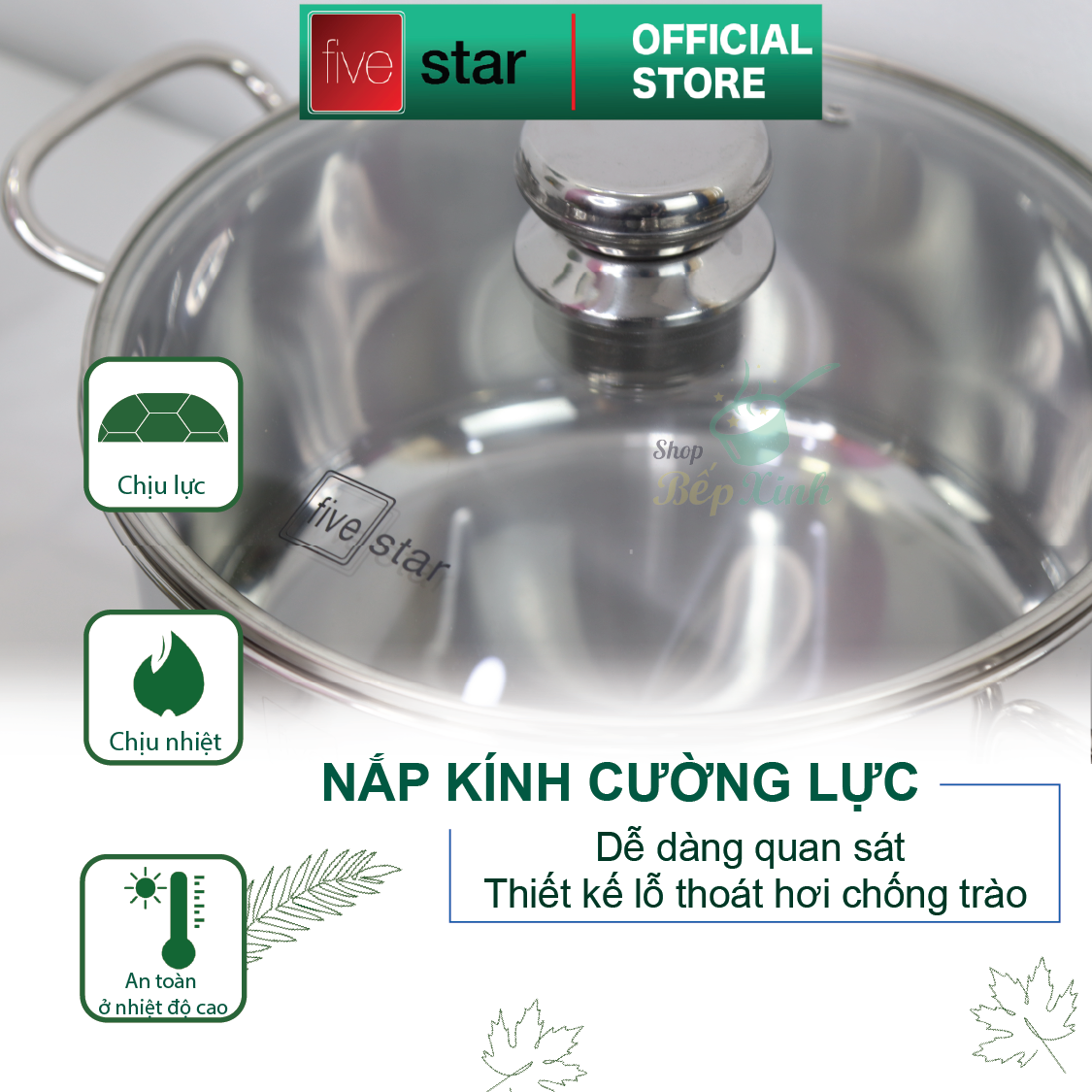 ✨Bộ Nồi 5 Đáy Cao Cấp Bếp Từ Fivestar FSB55D001 Nắp Kính Inox 430 ( 1 quánh16cm x N18cm x N20cm x N24cm x C 24cm ) , tặng 1 vá canh