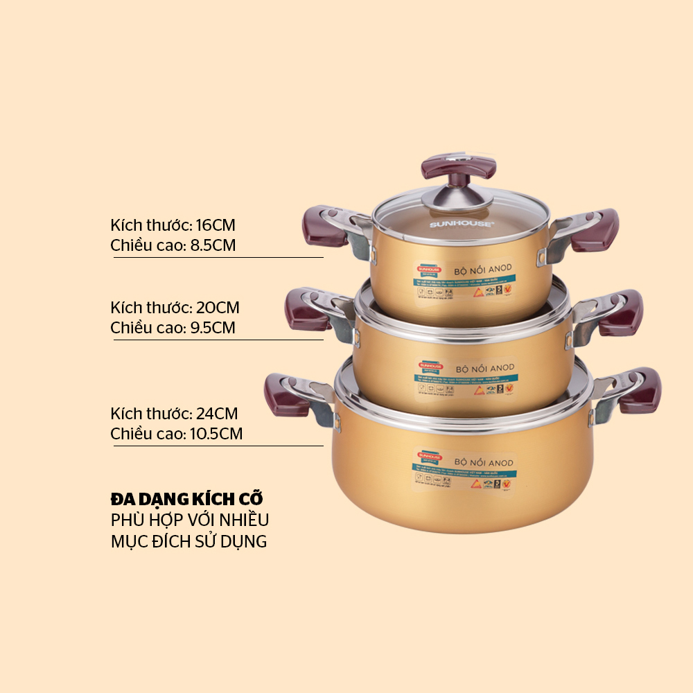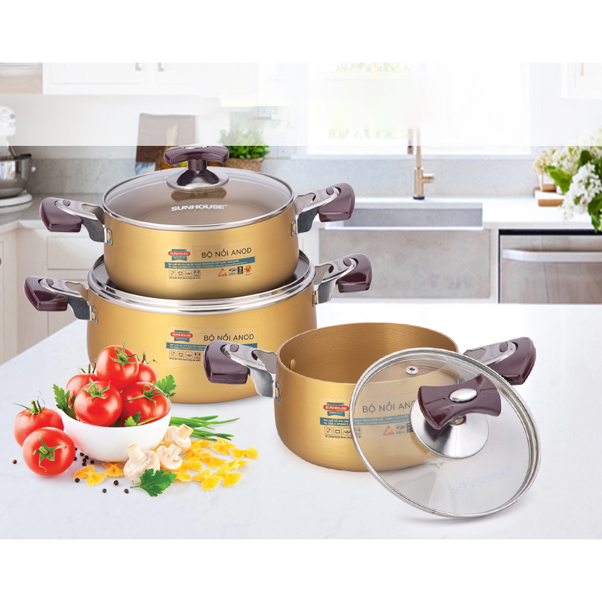 Ứng dụng công nghệ đó – SUNHOUSE cho ra đời bộ nồi Anod với độ bền cứng lâu dài cùng thiết kế tinh tế, sang trọng, là sự lựa chọn tối ưu cho mọi căn bếp gia đình.