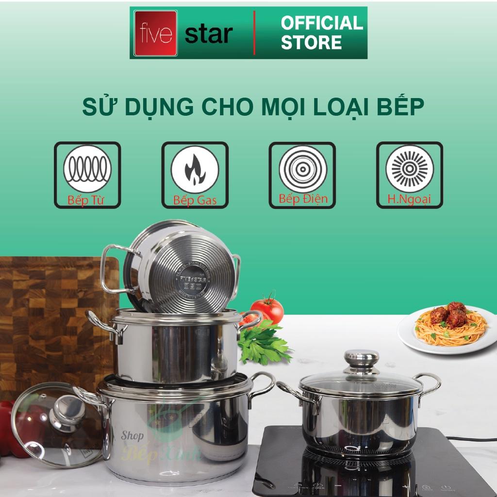 ✨Bộ nồi chảo 3 đáy inox 403 Fivestar 5 món nắp kính tặng 5 muỗng ăn( N16cm x N18cm xN20cm x N24cm x chảo 24cm)