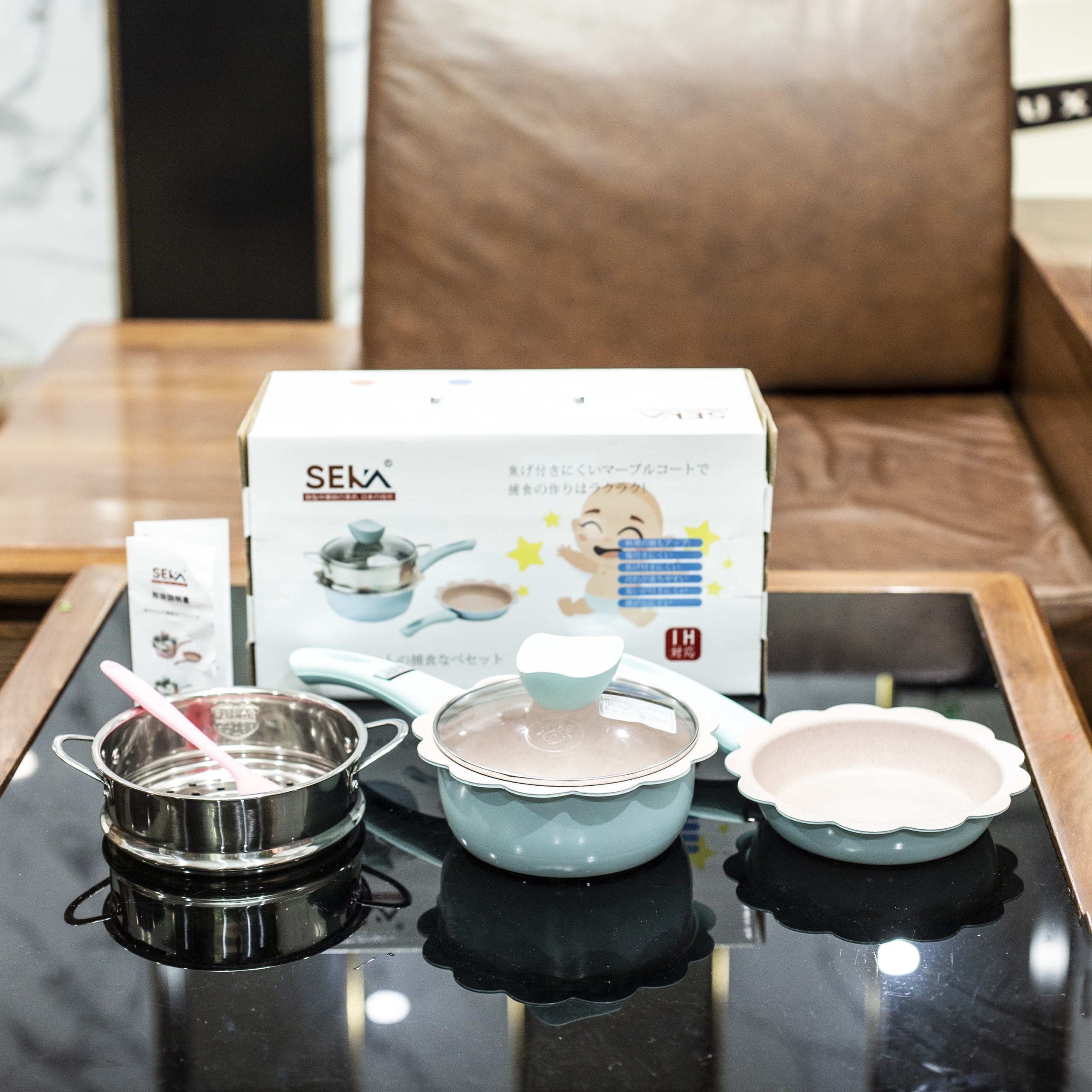 ✨Bộ nồi chảo đá hình hoa cho bé ăn dặm cao cấp chống dính kèm lồng hấp nấu chế biến đồ gia đình dùng được bếp từ