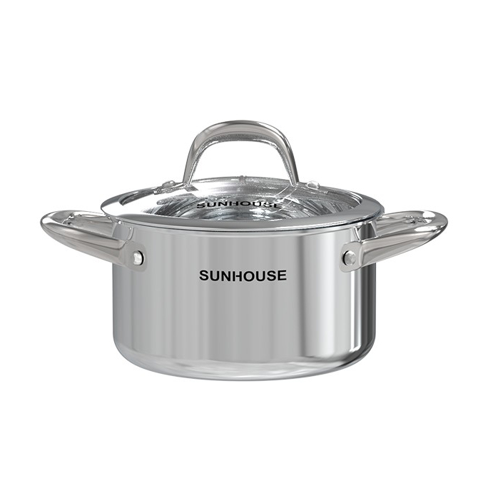 Bộ Nồi Chảo Inox 304 Đáy Liền Sunhouse SHG808 chất liệu Inox không gỉ giúp bộ sản phẩm sáng bóng và dễ dàng vệ sinh, lau chùi. Thiết kế trang nhã với những đường nét bo tròn hiện đại, góp phần tạo nên diện mạo hài hòa, đẹp mắt cho căn bếp gia đình.