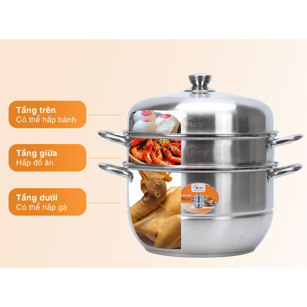 ✨Bộ nồi hấp inox cao cấp đáy từ 3 tầng vung kính - thương hiệu Hare - lỗi 1 đổi 1