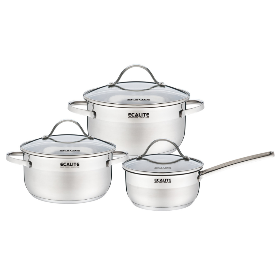 Nhằm biết được thị hiếu của người tiêu dùng hiện nay, đặc biệt là các chị em phụ nữ trong việc lựa chọn đồ gia dụng nhà bếp nói chung và bộ nồi nói riêng sao cho đáp ứng đa dạng nhu cầu khác nhau. Chính vì vậy Ecalite đã thiết kế bộ nồi gồm 1 nồi cỡ lớn, 1 nồi cỡ trung và 1 quánh cỡ nhỏ với đường kính lần lượt là: