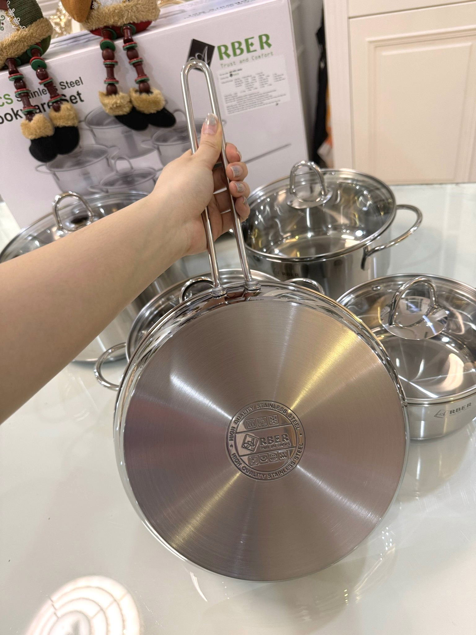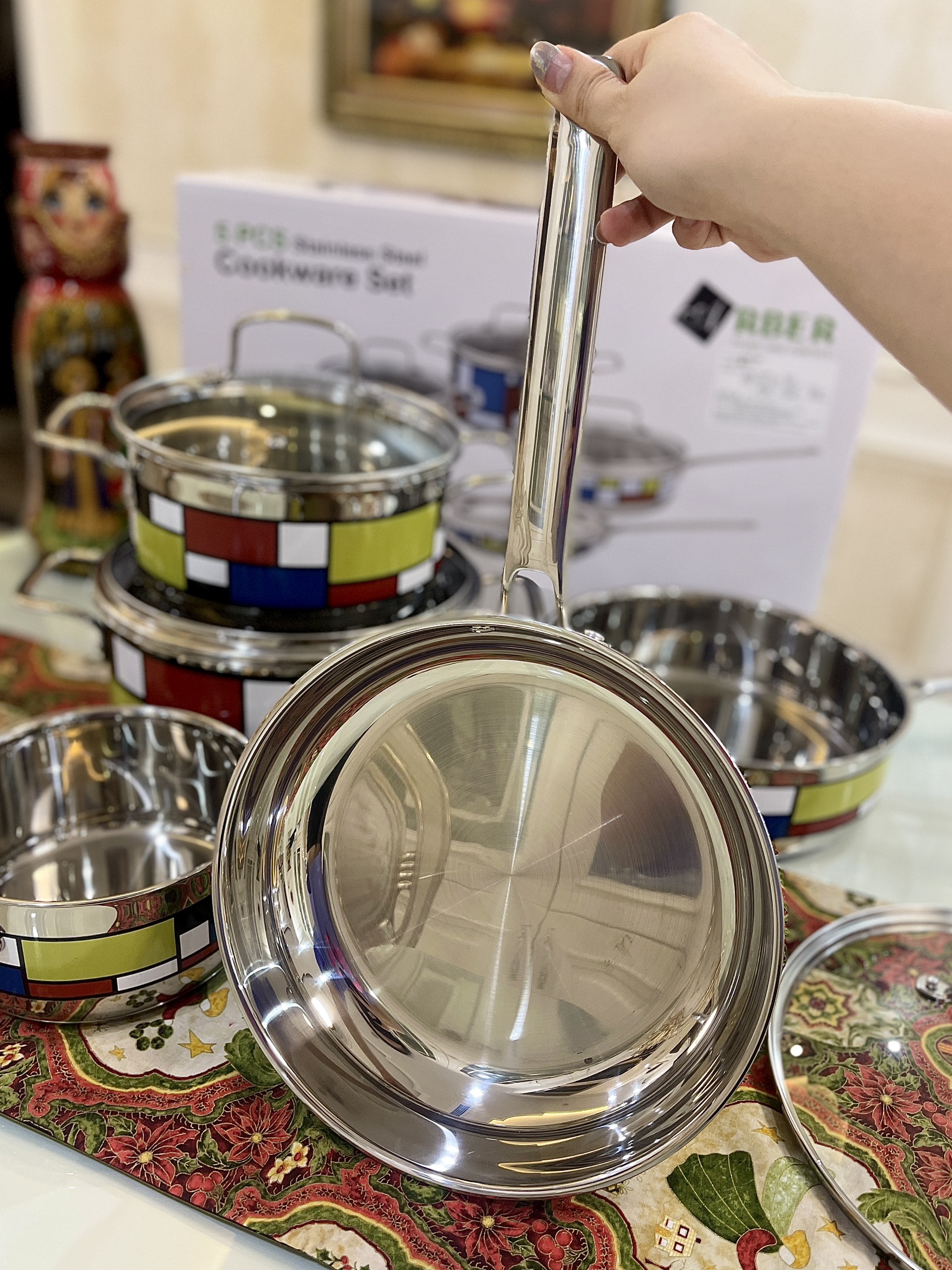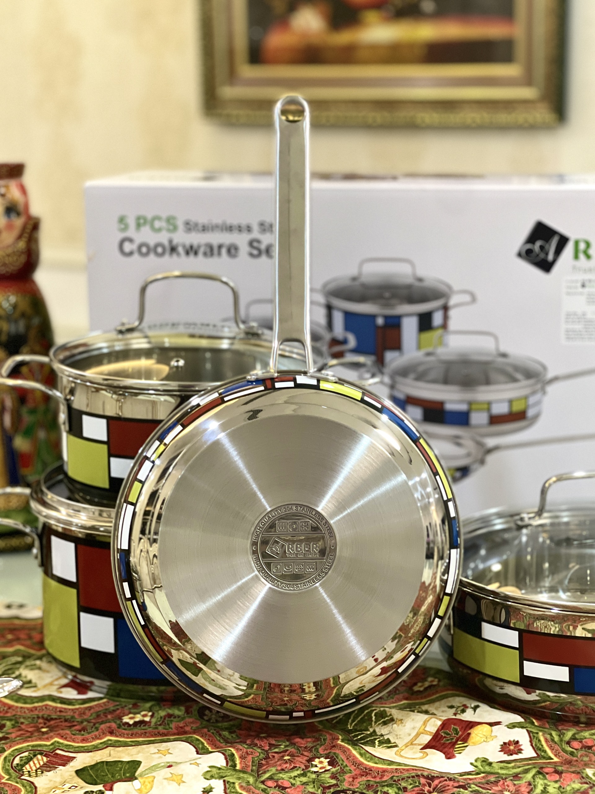 Bộ nồi chảo từ 5 chiếc cao cấp ARBER sắc màu làm bằng chất liệu thép không gỉ, đáy bộ nồi 3 đáy siêu bền khi sử dụng, bộ nồi tiếp xúc nhiệt nhanh, êm, tản nhiệt đều khi nấu. Bộ nồi từ 5 chiếc cao cấp ARBER bán với giá tốt nhất trên thị trường. Bộ sản phẩm chuẩn gồm: