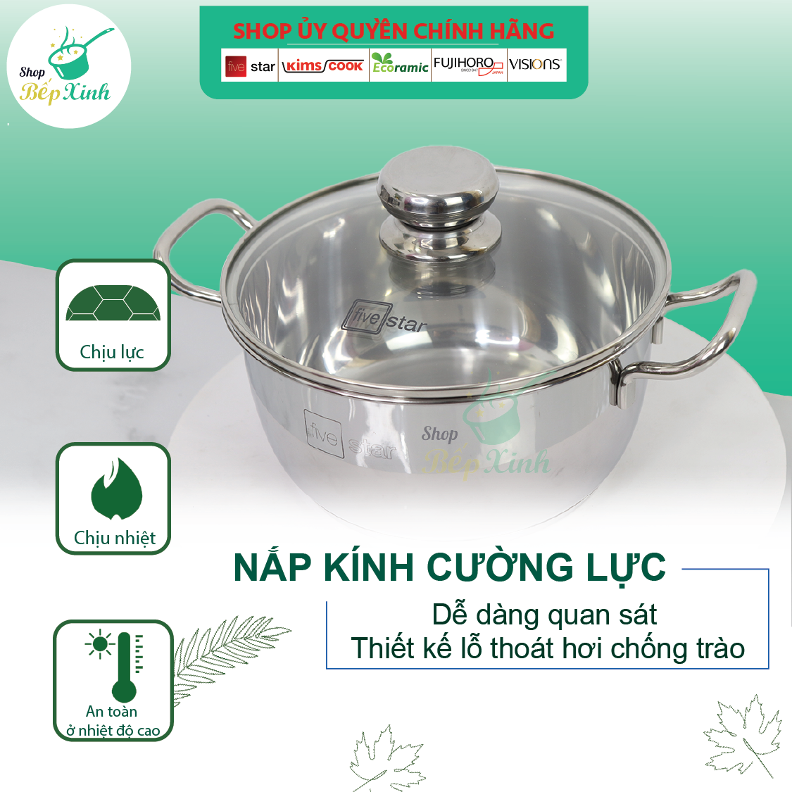 Nồi inox 3 đáy Fivestar FSN 24cm nắp inox đến từ thương hiệu Fivestar nổi tiếng Việt Nam, sản xuất tại Việt Nam. Nồi có thiết kế sang trọng với kích cỡ 24cm được làm từ chất liệu